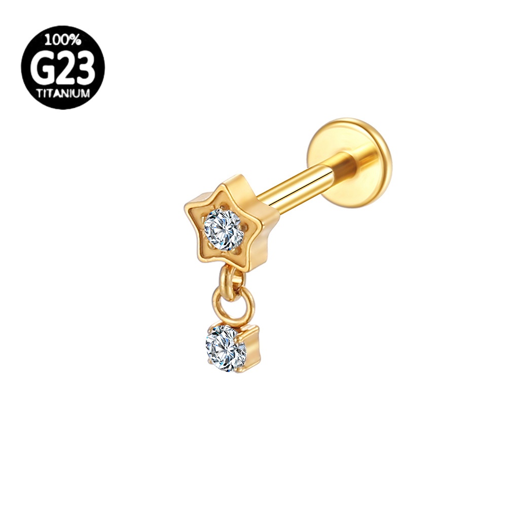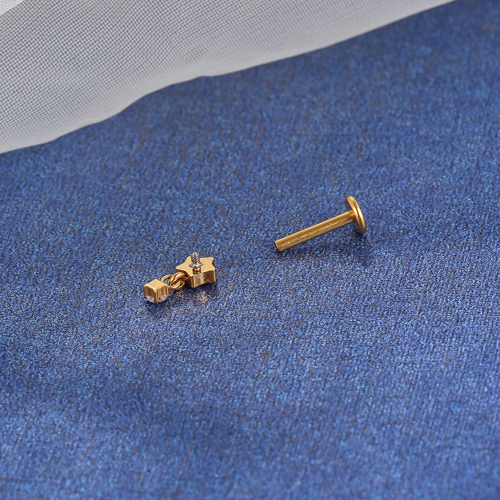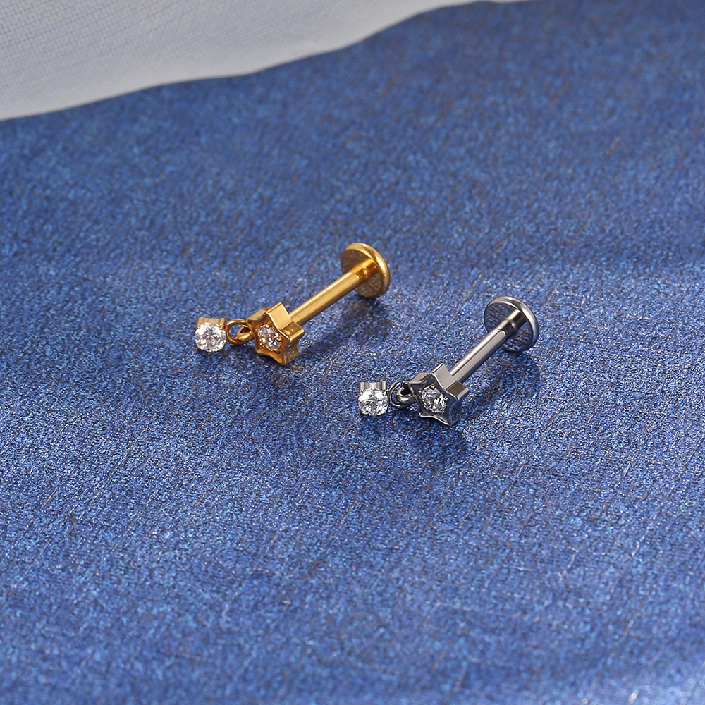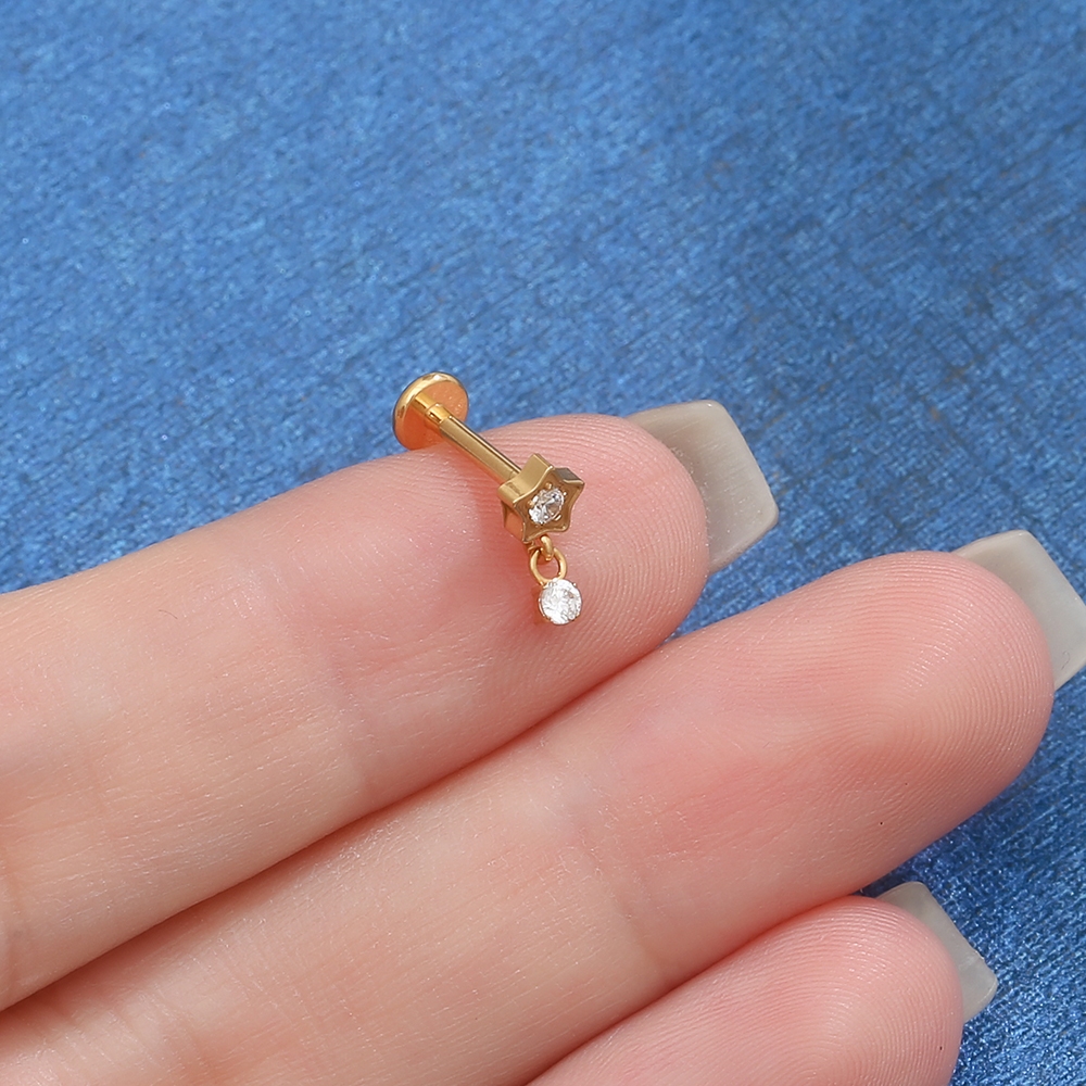 Piercing Labret Titânio Pvd Estrela Zircônia Com Pingente Helix, Tragus, Conch, Nariz, Boca-Medusa e Outros