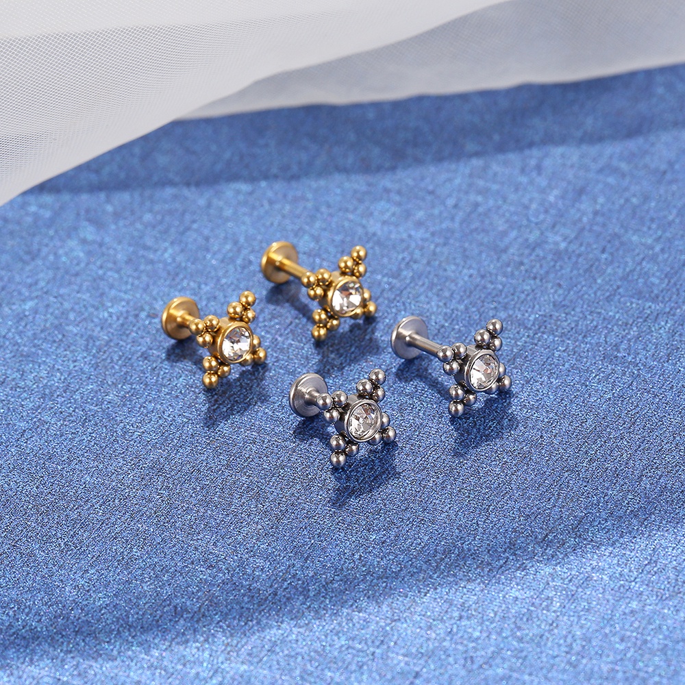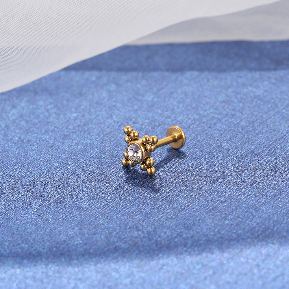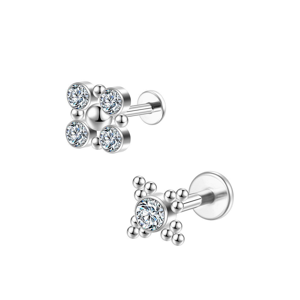 2PCS Kit Piercing Labret Aço Cirúrgico PVD Indiano Strass / Helix, Tragus, Conch, Nariz, Boca-Medusa e Outros