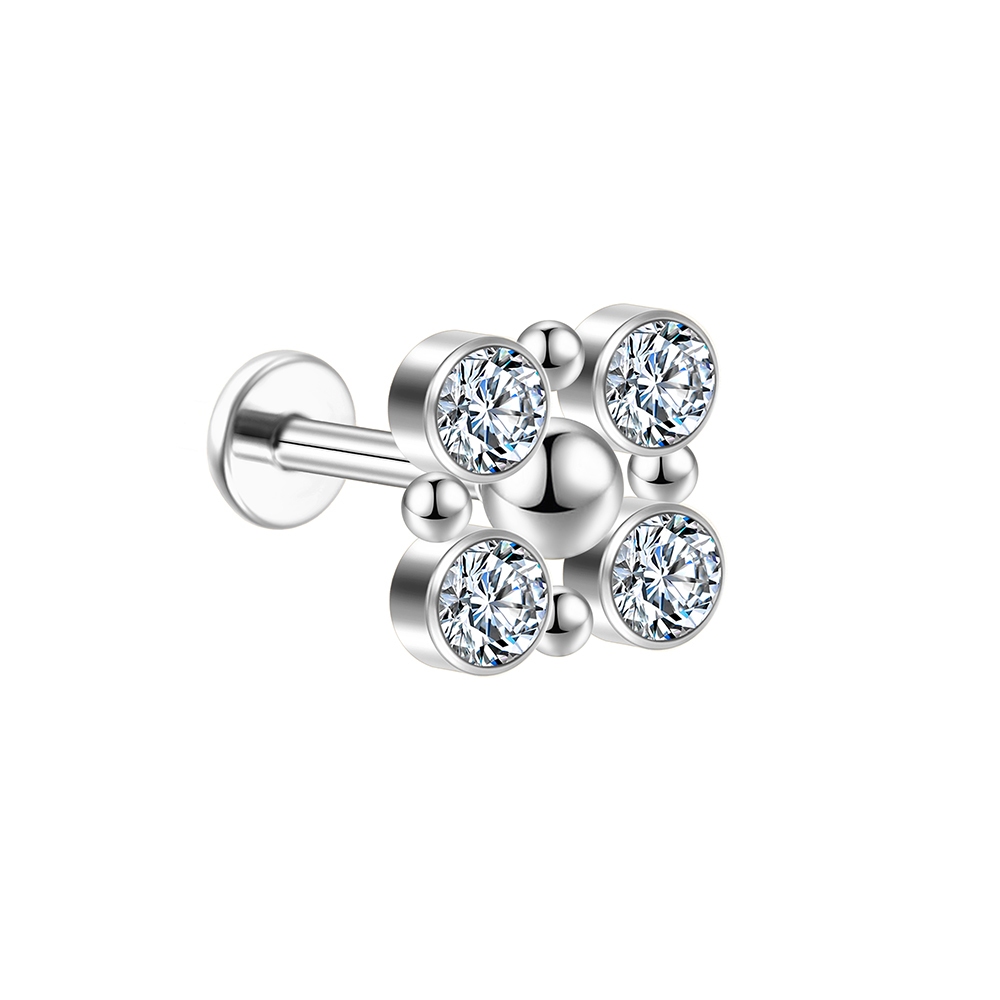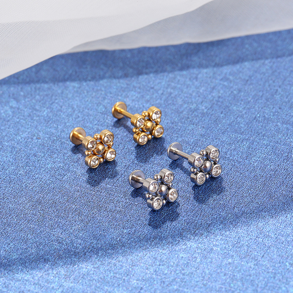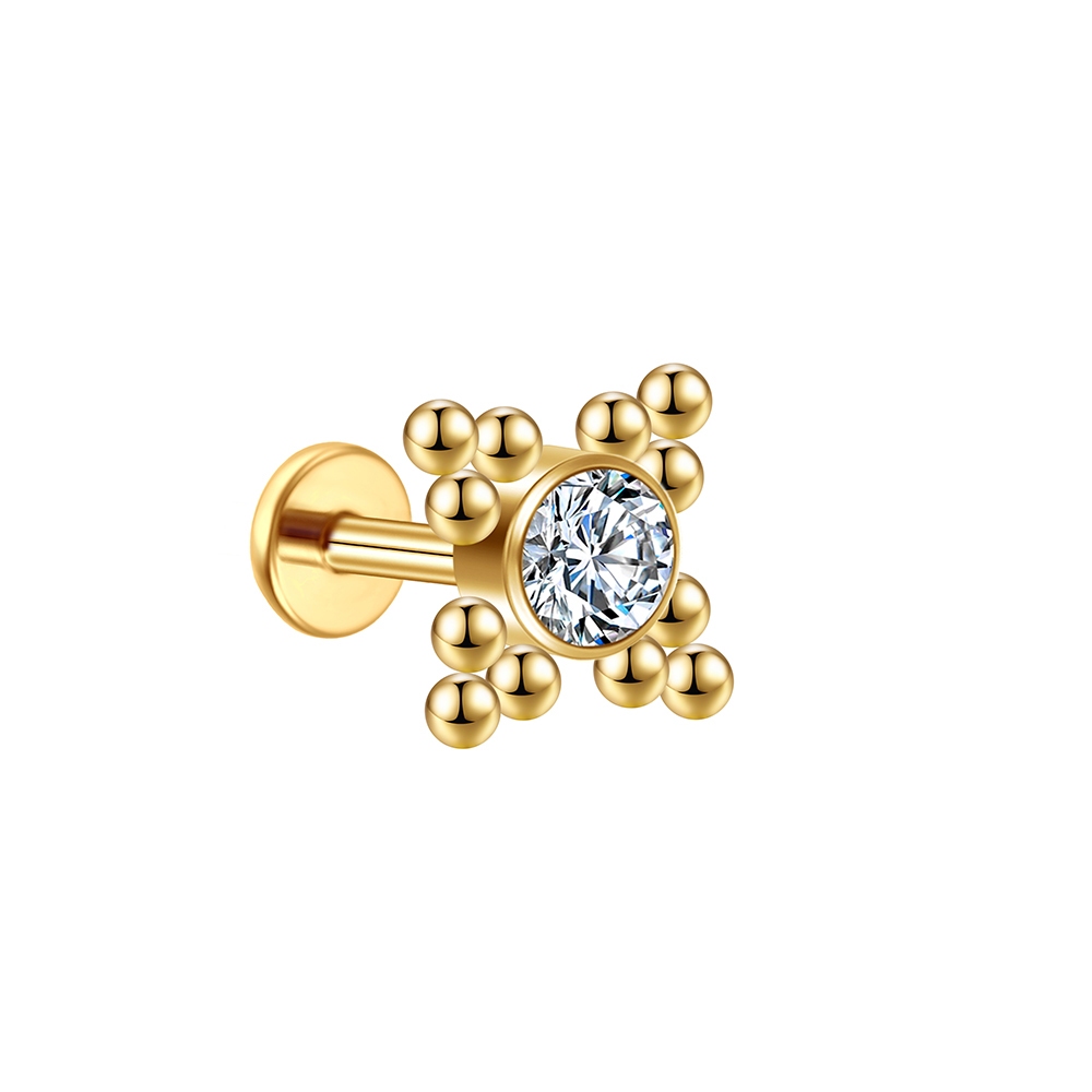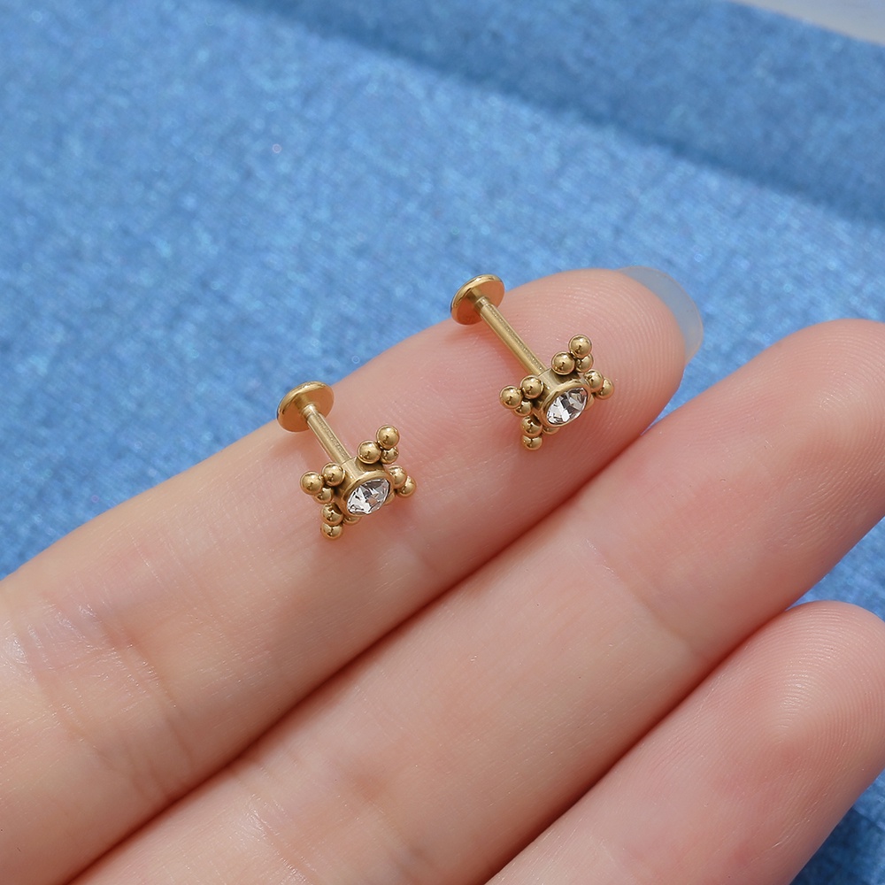 2PCS Kit Piercing Labret Aço Cirúrgico PVD Indiano Strass / Helix, Tragus, Conch, Nariz, Boca-Medusa e Outros