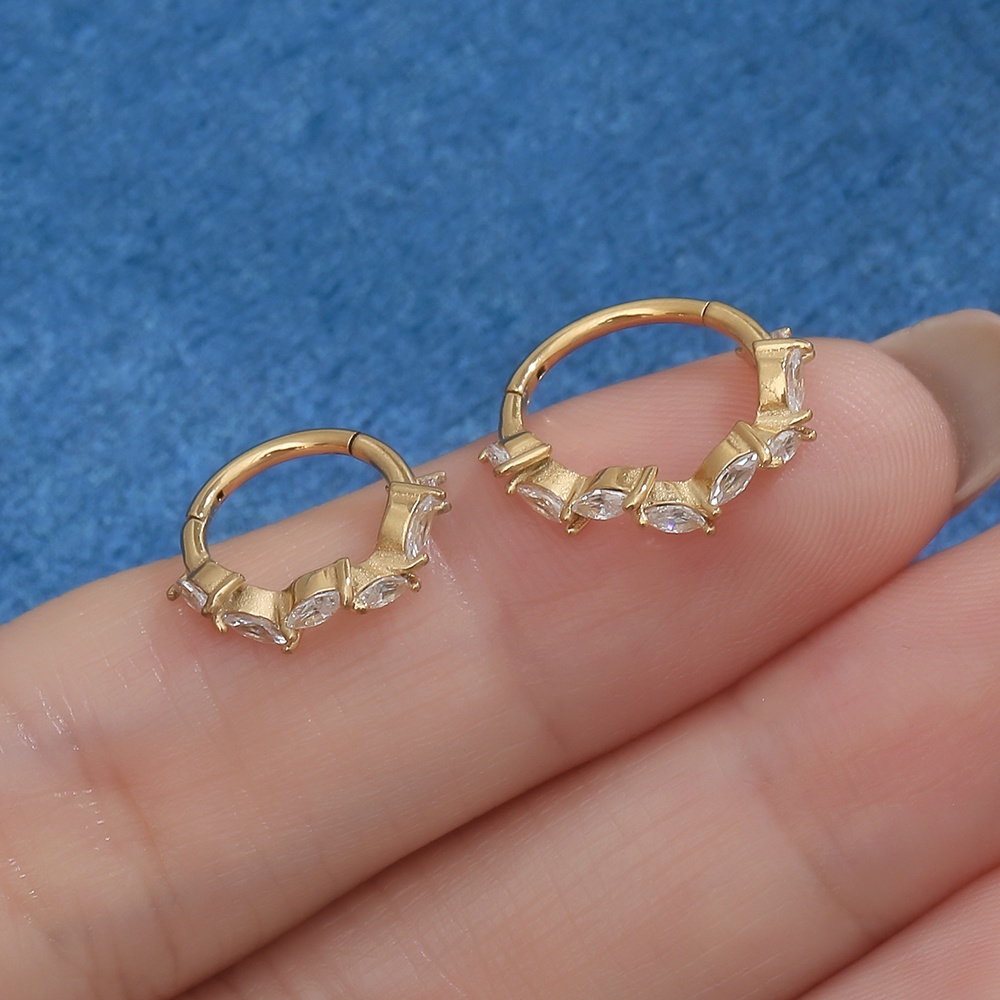 Piercing Argola Aço Cirúrgico Segmento Articulado Losango Zircônias Cravejadas | Septril, Rook, Conch, Nariz