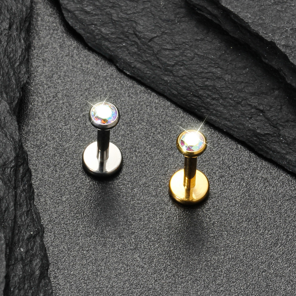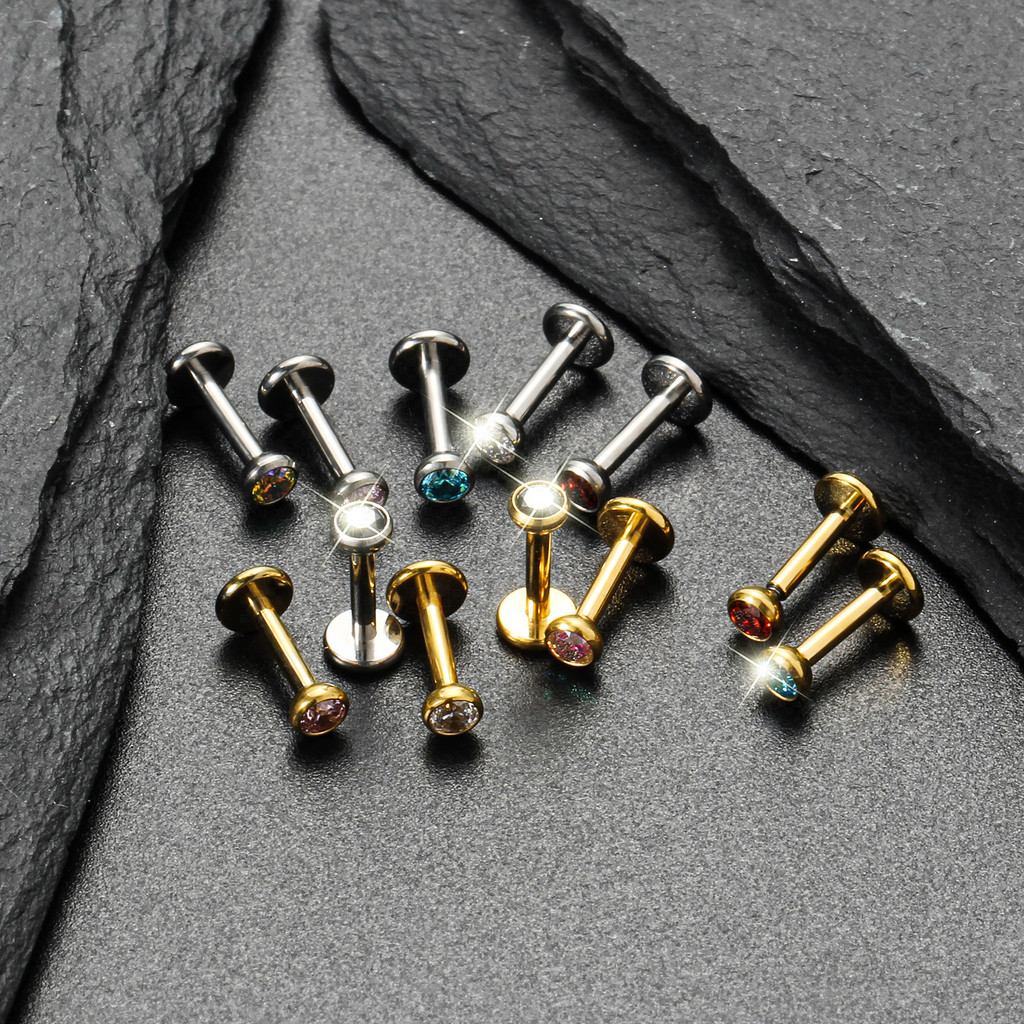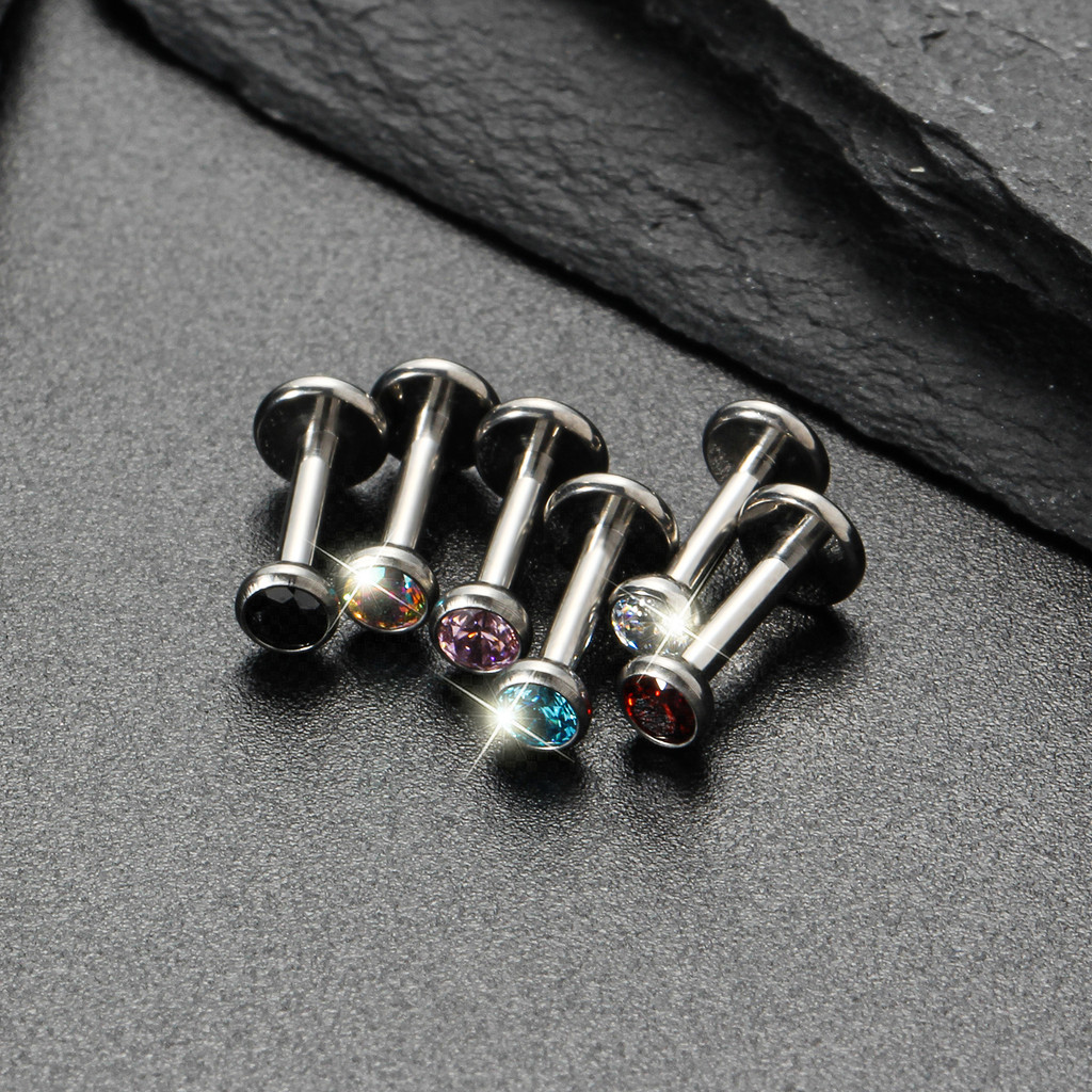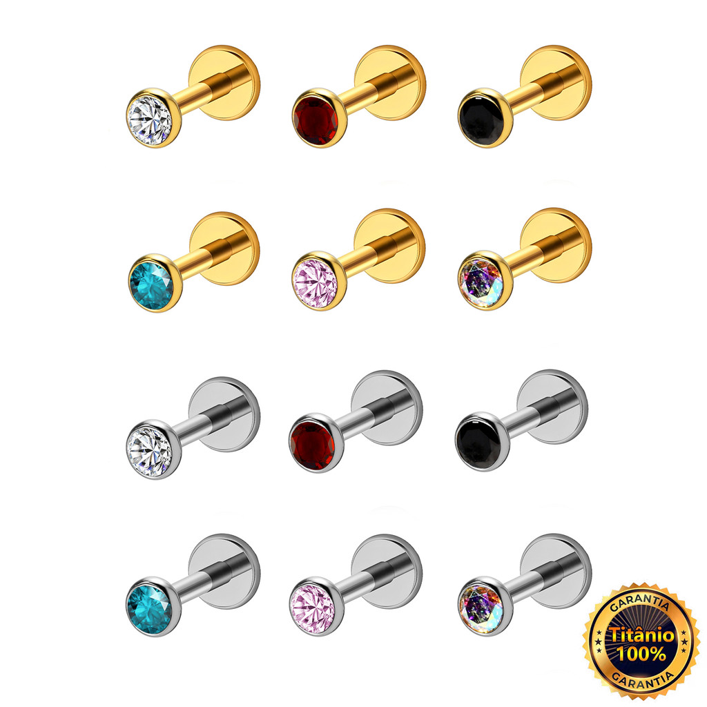 Piercing Labret Titânio Zircônia Colorida Cravejada | Helix Tragus Conch Nariz Boca Rock Body Piercing Orelha
