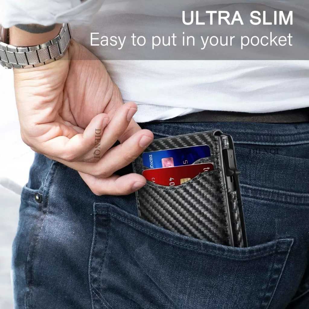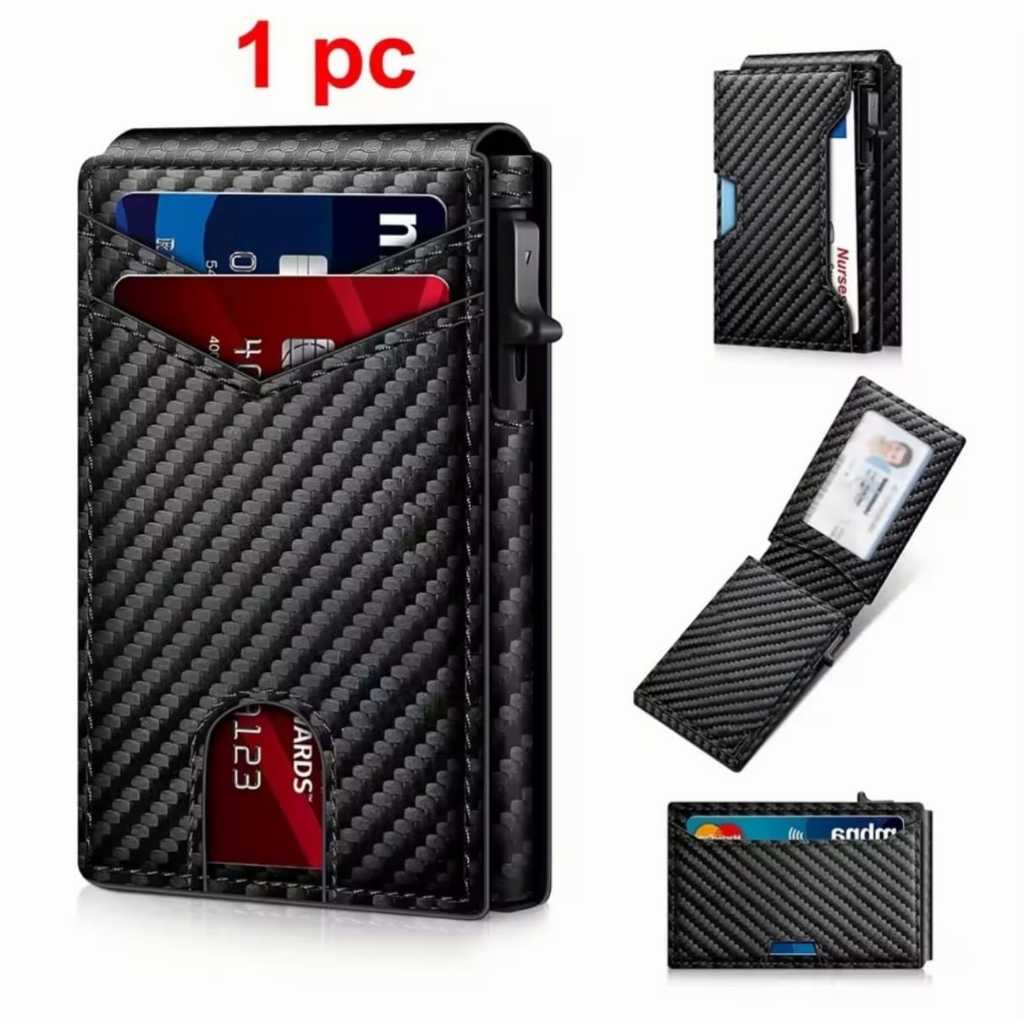 Porta Cartão 2 em 1 Masculino RFID Anti-Roubo de Estampa Fibra de Carbono para Cartões e CNH 8184 8409