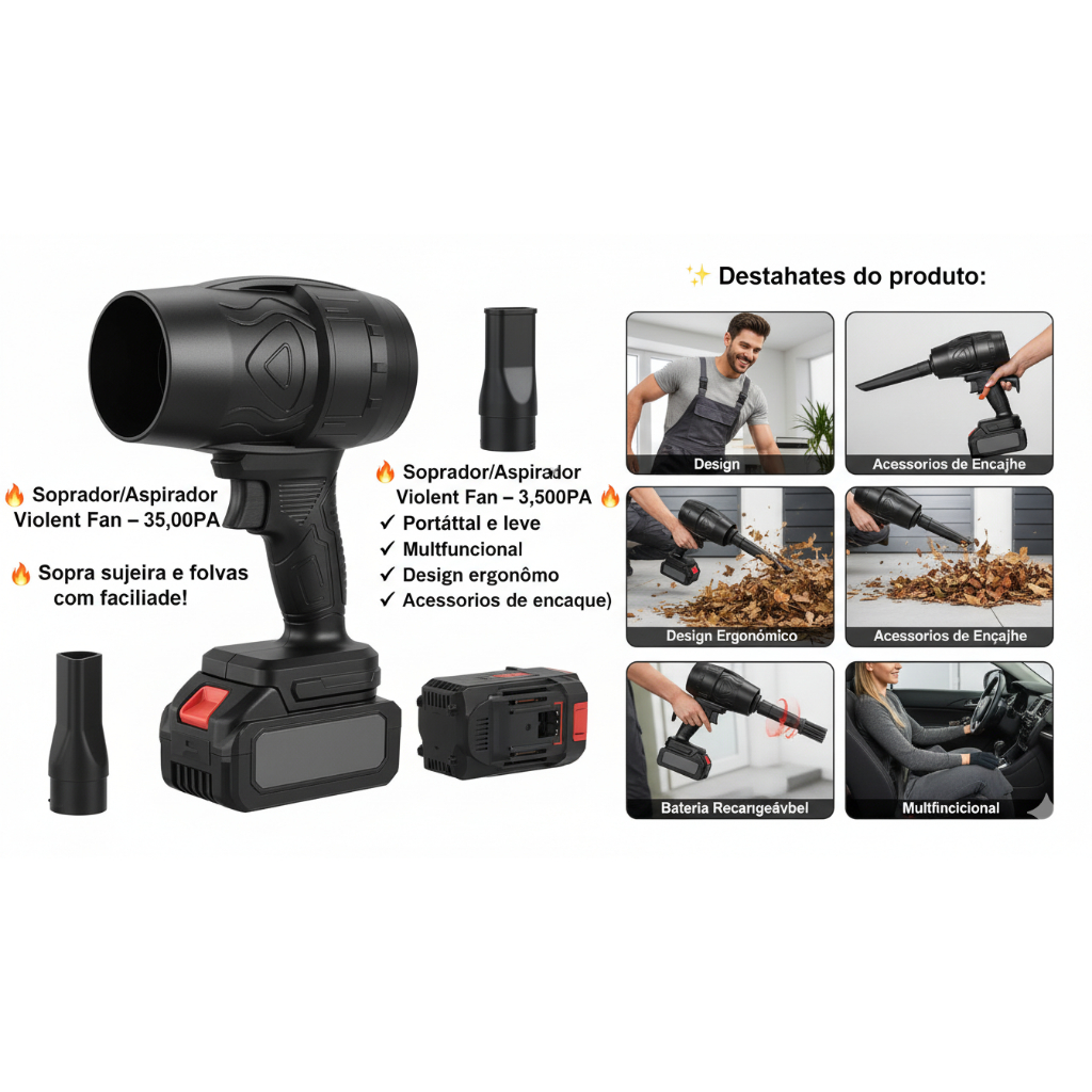 SOPRADOR E Aspirador Portail Eletrico Recarregavel Sem Fio120w/Soprador/Aspirador Portátil Violent Fan