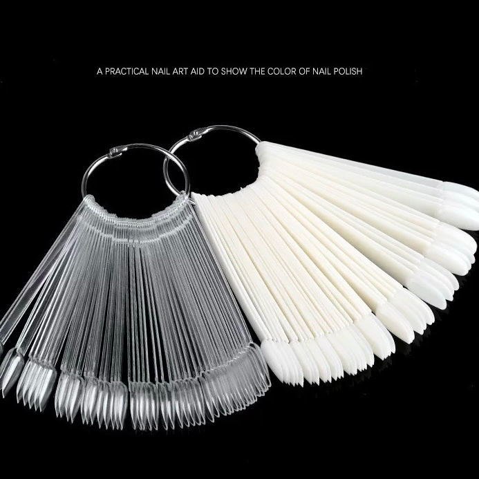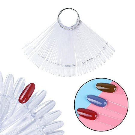 Leque kit c/50 Almond Para Demostração De Esmalte Transparente/Branco Cores Mostruário Com Argola Para Pendurar