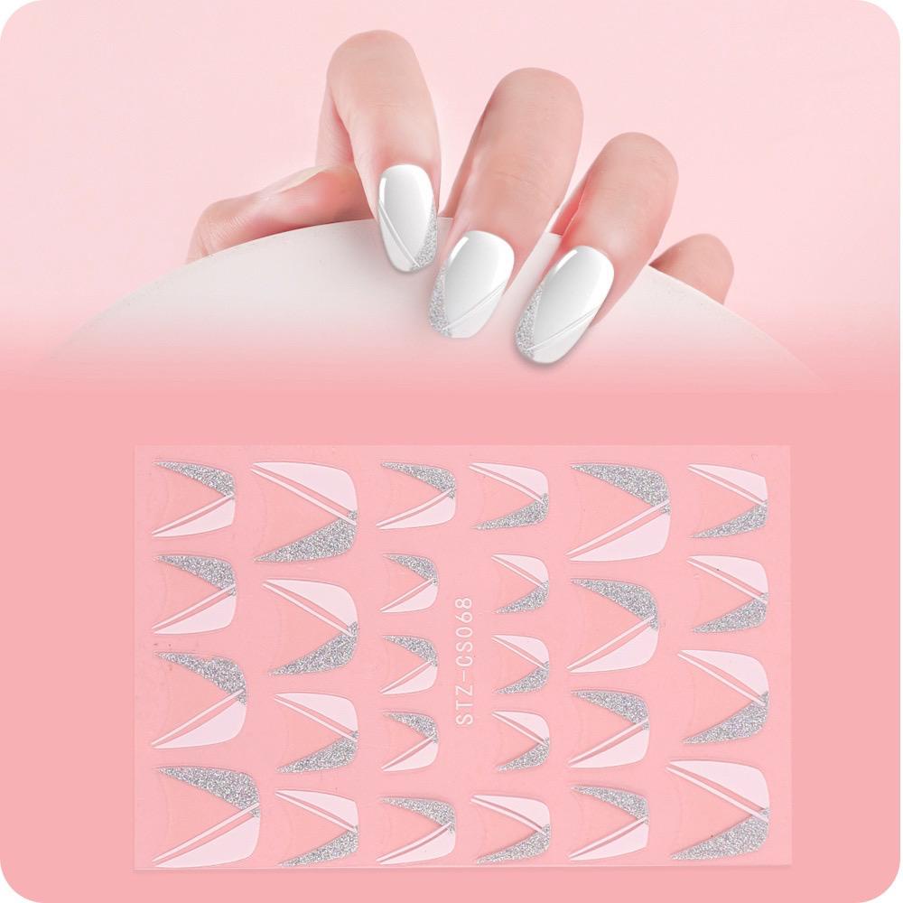 Adesivo Para Unha Branco Prata Francesinha Manicure Nail art