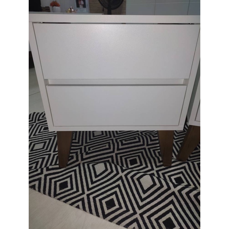 1 Mesa de cabeceira com 2 gavetas, 100% mdf cor Branco Com Pés