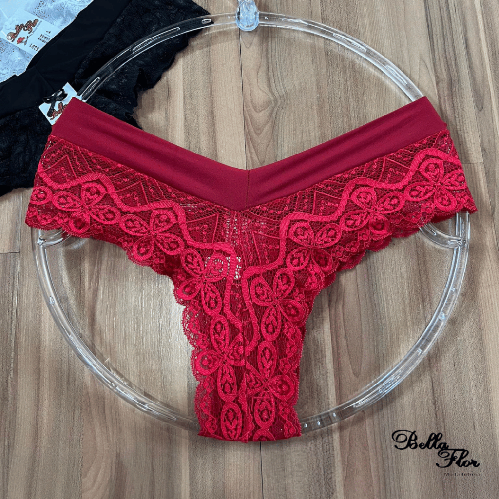 KIT 5 Calcinhas Tanga Barato Renda Trabalhada Confortável Lingerie Moda Íntima