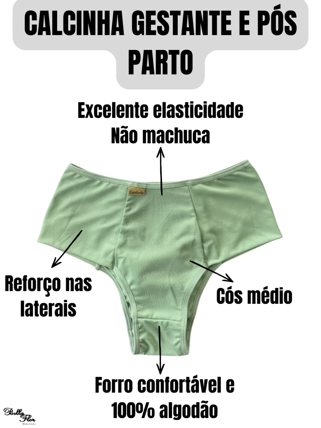 Kit Calcinhas Cintura Alta Gestante SUSTENTAÇÃO REFORÇADA Pós Parto Lingerie Forro 100% Algodão