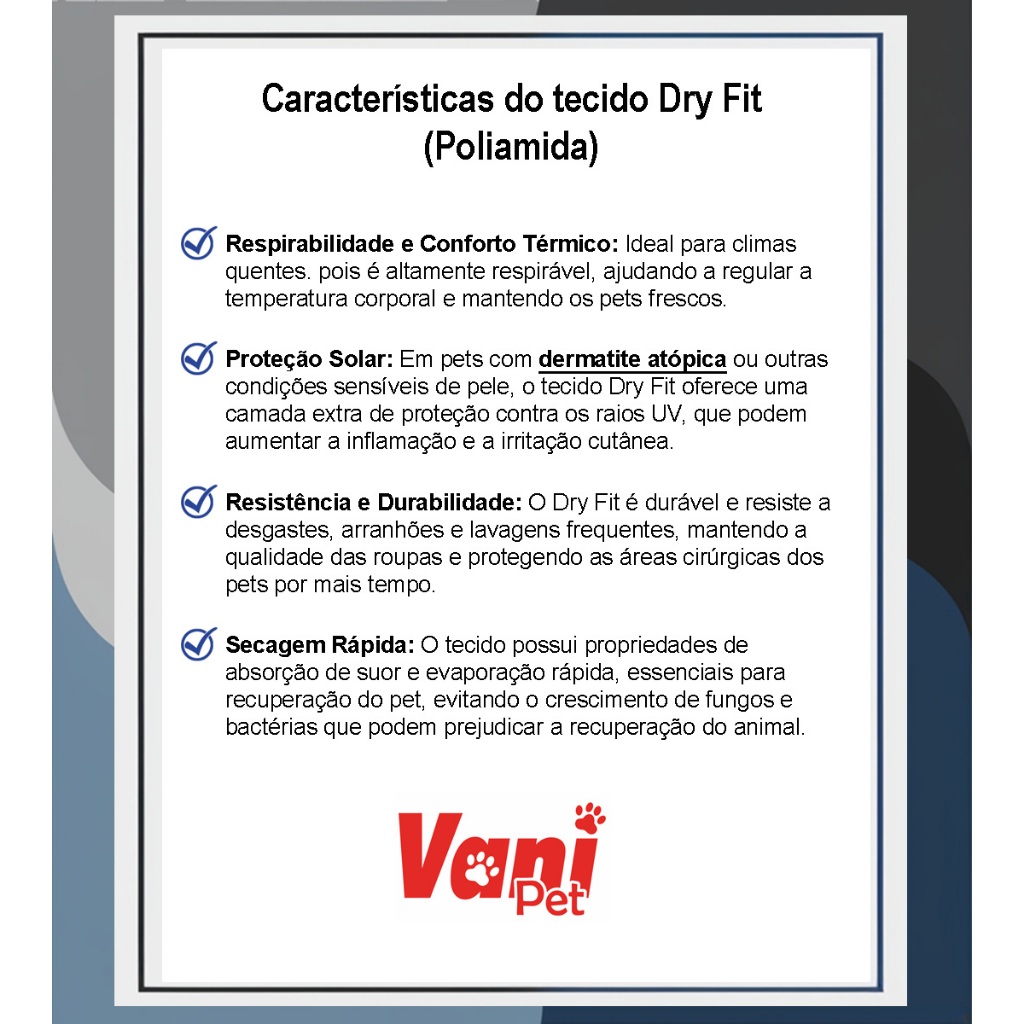 Roupa Protetora Cachorro - Corpo Pernas Dianteiras Traseiras - Tecido Dry Fit Proteção Solar UV 50+