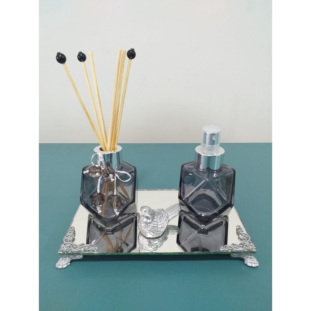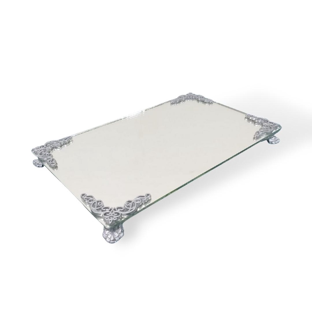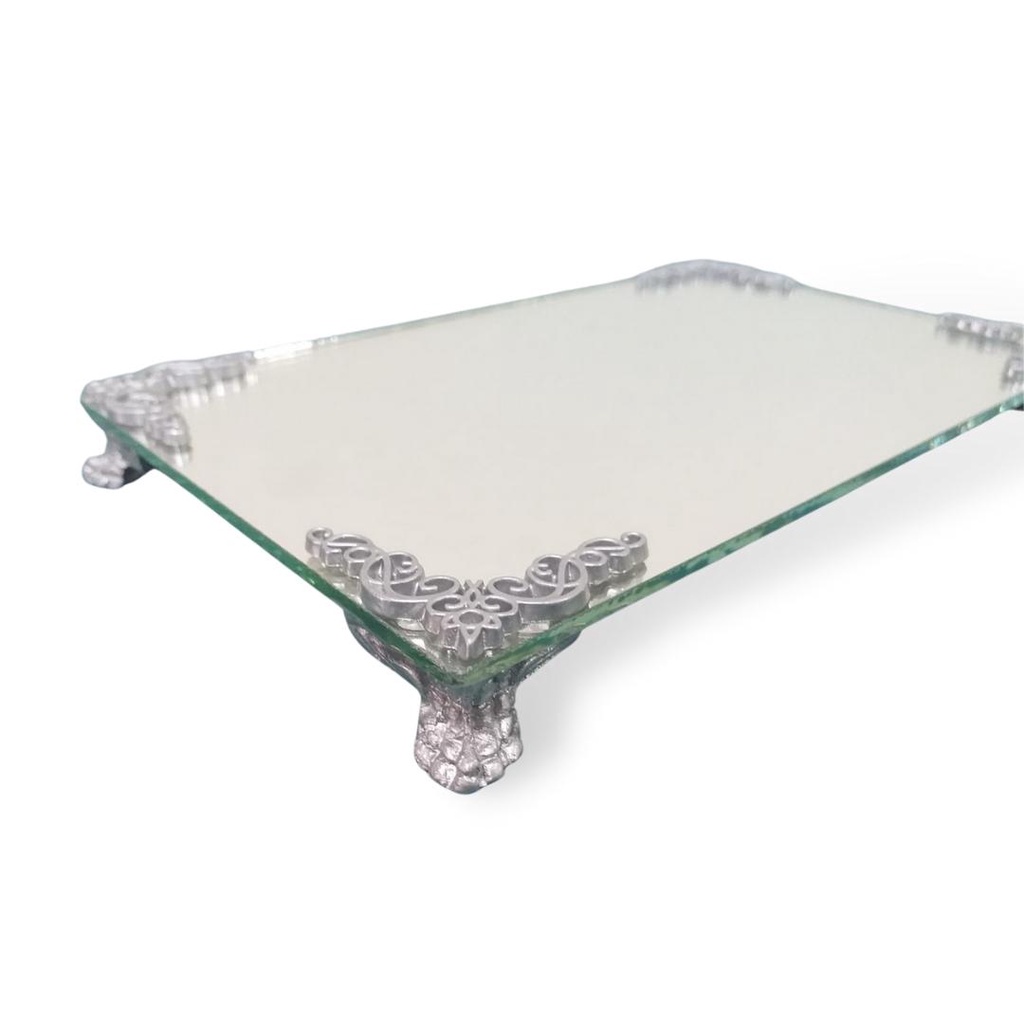 Bandeja Banheiro Lavabo Prata Espelhada Super Luxo Com Pé