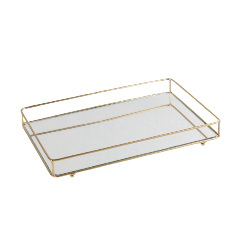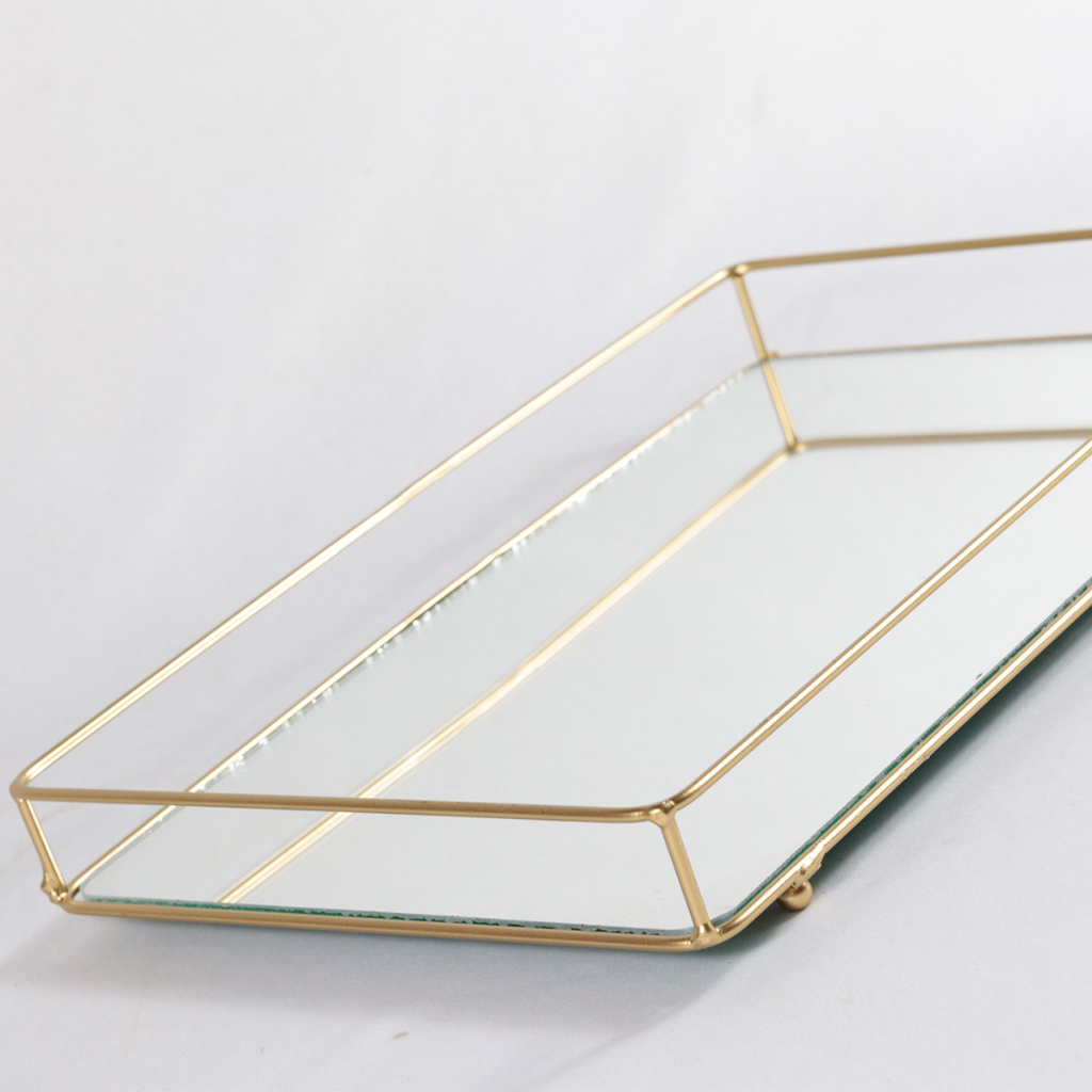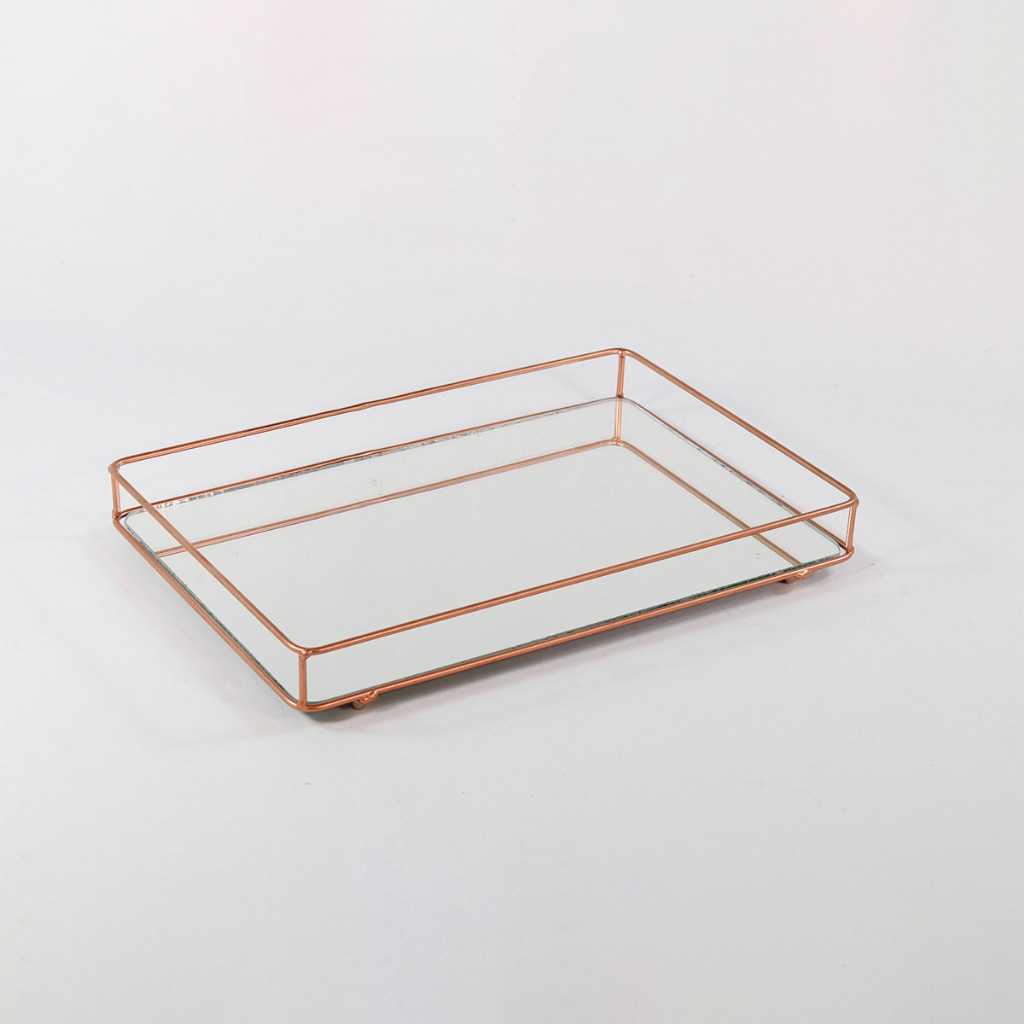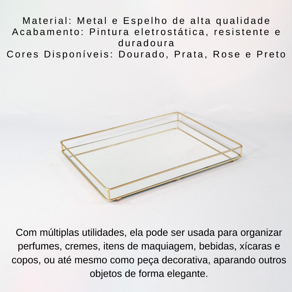 Bandeja Helo Decorativa de Espelho com Metal Base Retangular 20x30cm Organização Ambientes