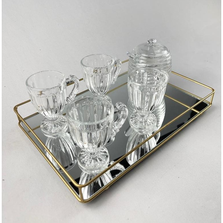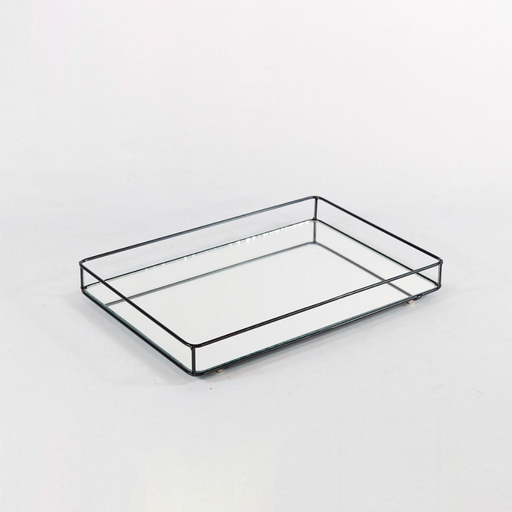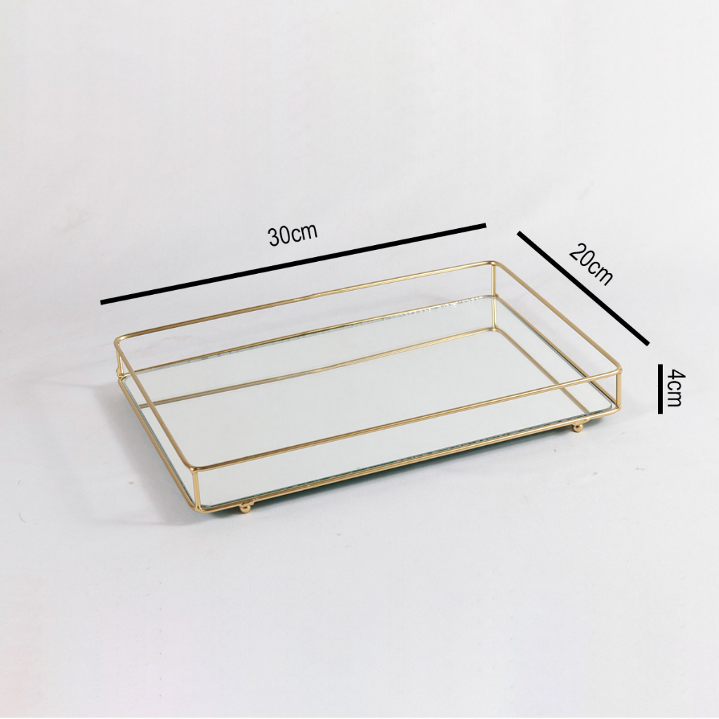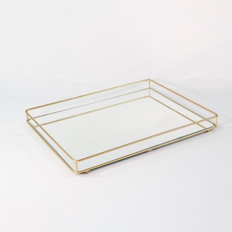 Bandeja Helo Decorativa de Espelho com Metal Base Retangular 20x30cm Organização Ambientes