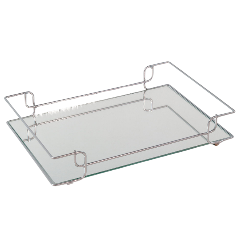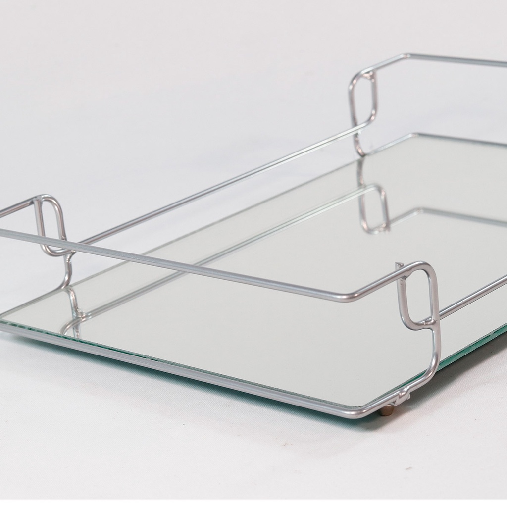 Bandeja Sofia Prata Decorativa de Metal e Base de Espelho 20x30cm para Organização