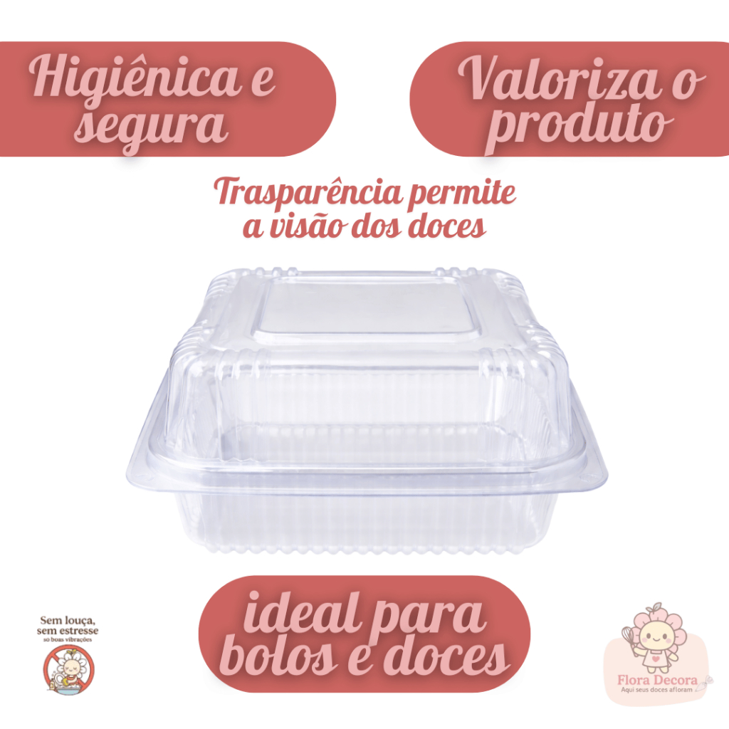 Kit 50 Mini Embalagem Quadrada com Tampa para Bolo e Sobremesa 130ml