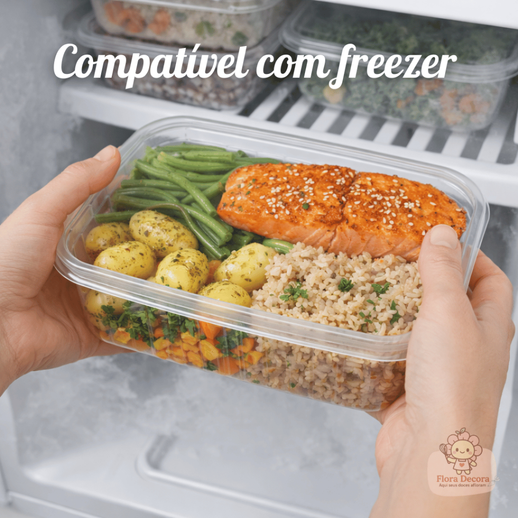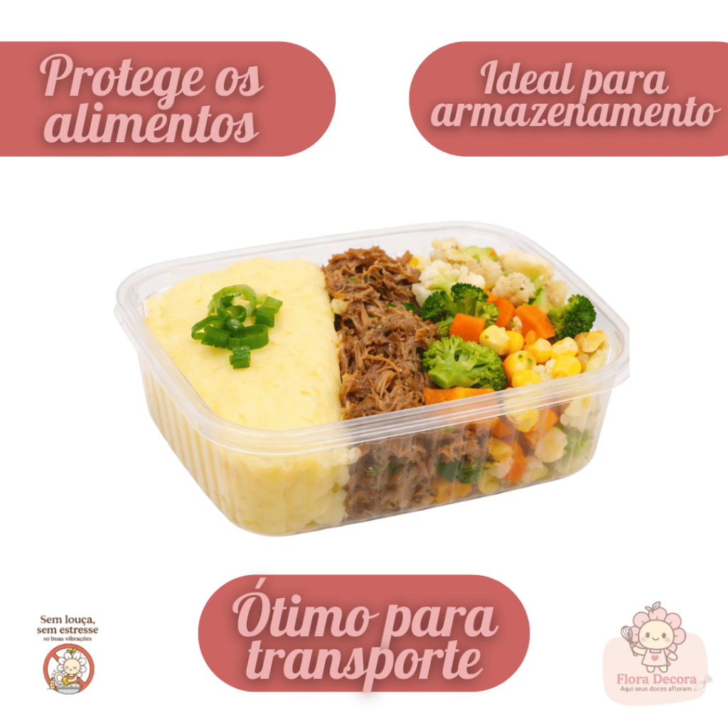 Kit 72 Pote De Embalagem Marmita Retangular Plástico Com Tampa 500ml