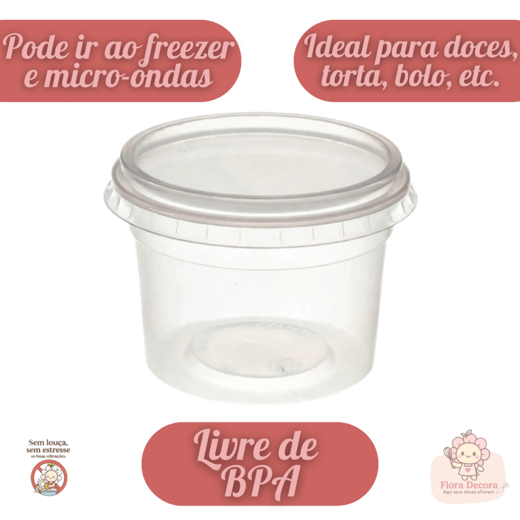 Kit 100 Pote Redondo Com Tampa Descartável Plástico 250ml Copozan