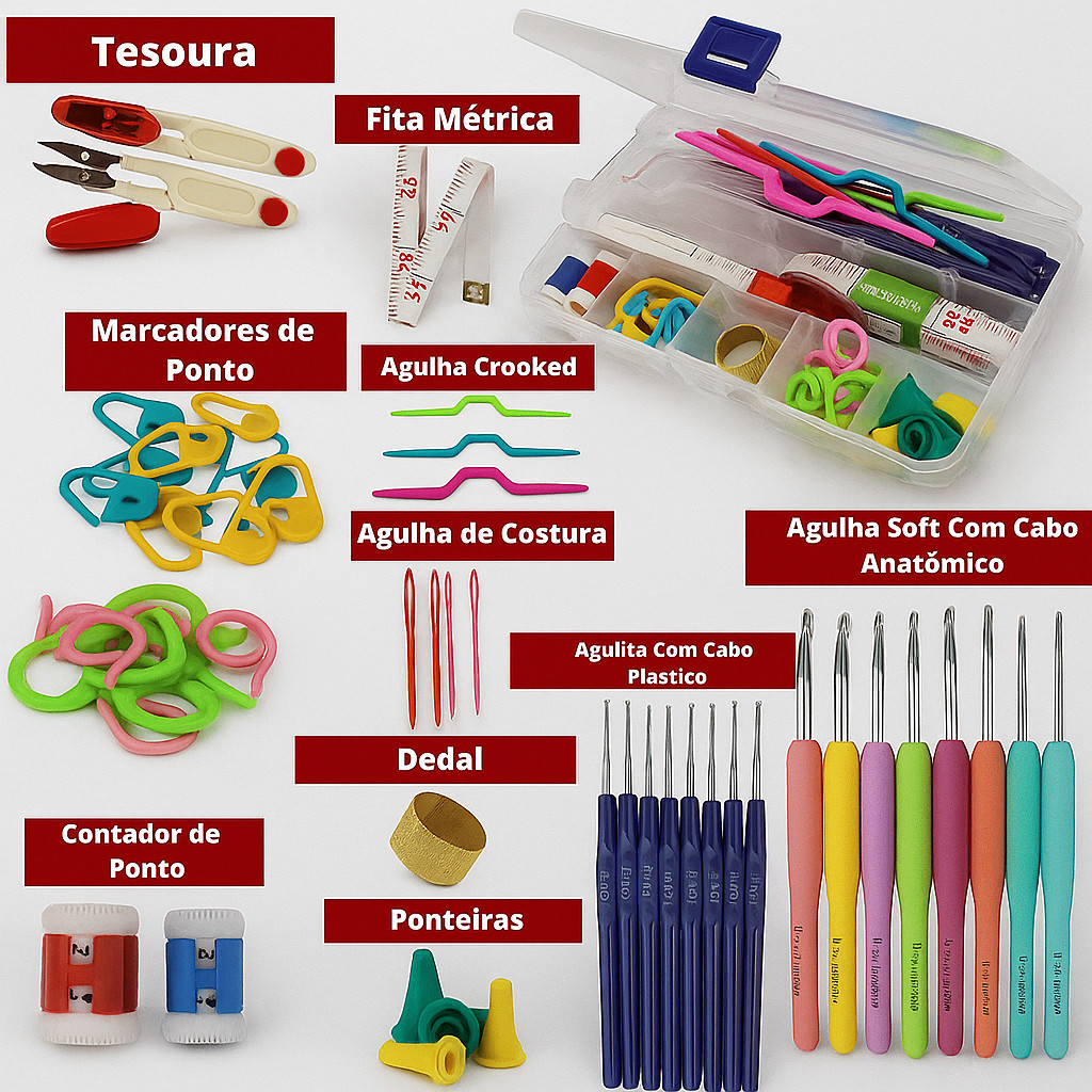 Kit Crochê Completo 53 Peças Para Fazer Amigurumi Agulhas Cabo Soft Tesoura Acessórios Lar das Fitas