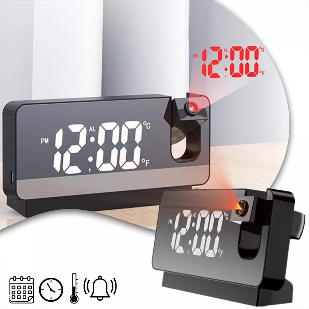 Despertador eletrônico de projeção de espelho, relógio de projeção de previsão do tempo