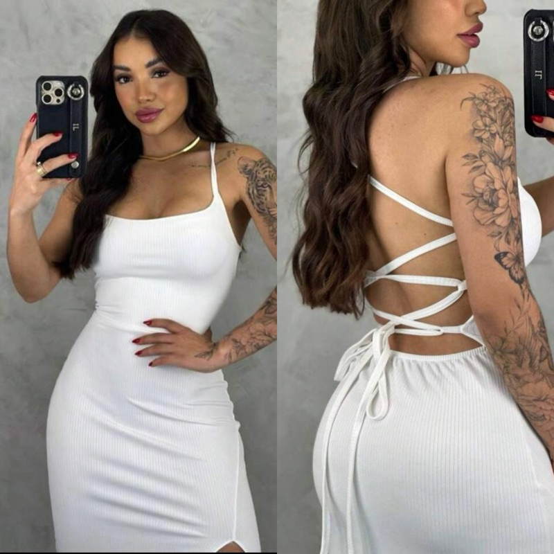 Vestido Feminino Trançado Costas Nua Amarração MIdi Com Fenda Lateral Anaruga Tubinho Envio Rápido!