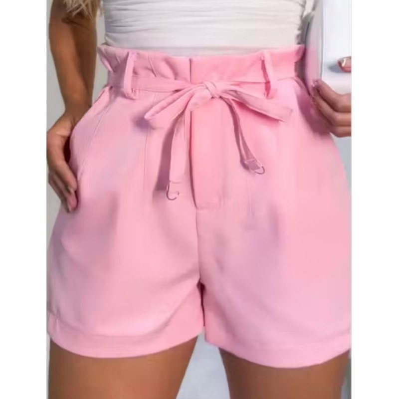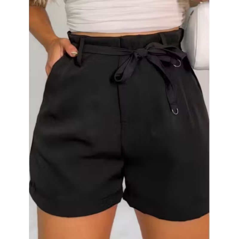 short feminino alfaiataria social cordão e argola com bolso e siper lateral
