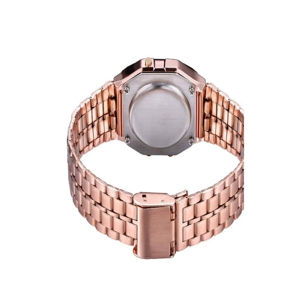 Relógio Digital Vintage Retrô Unissex LED Aço Resistente Prata Dourado Rose ajustável