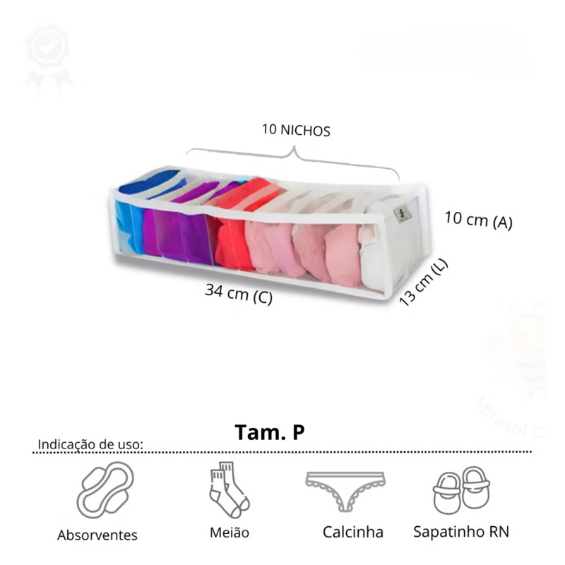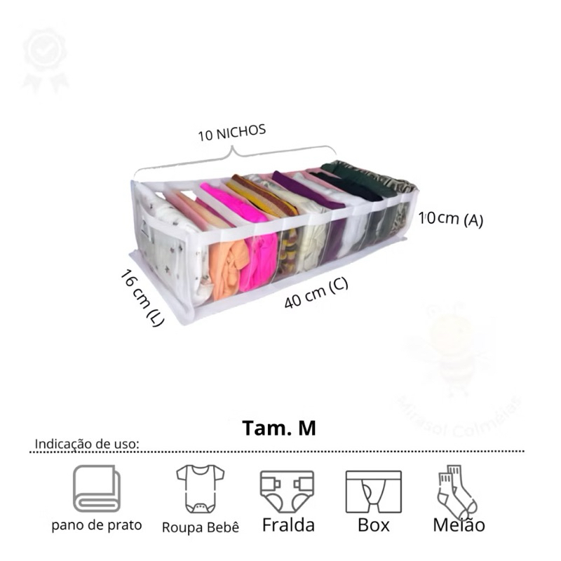 Kit 10 organizador transparente, colmeia para gaveta, bebe, peças intimas, meias 100 nichos, Mirasol
