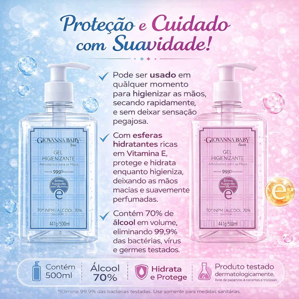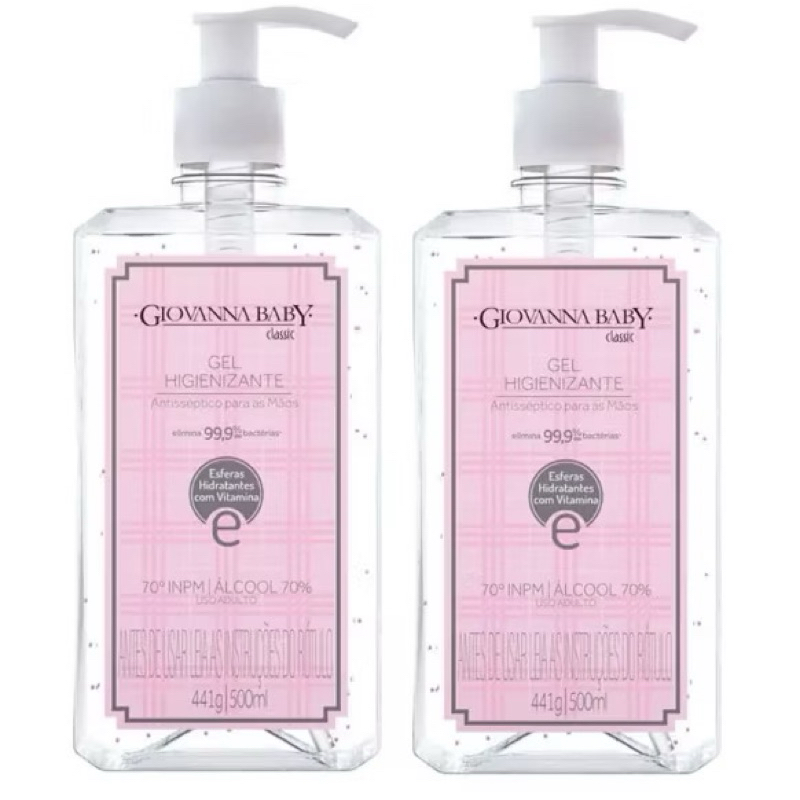Kit 2 Álcool em Gel Higienizante Giovanna Baby 70% INPM 500ml (Escolha as Fragrâncias)