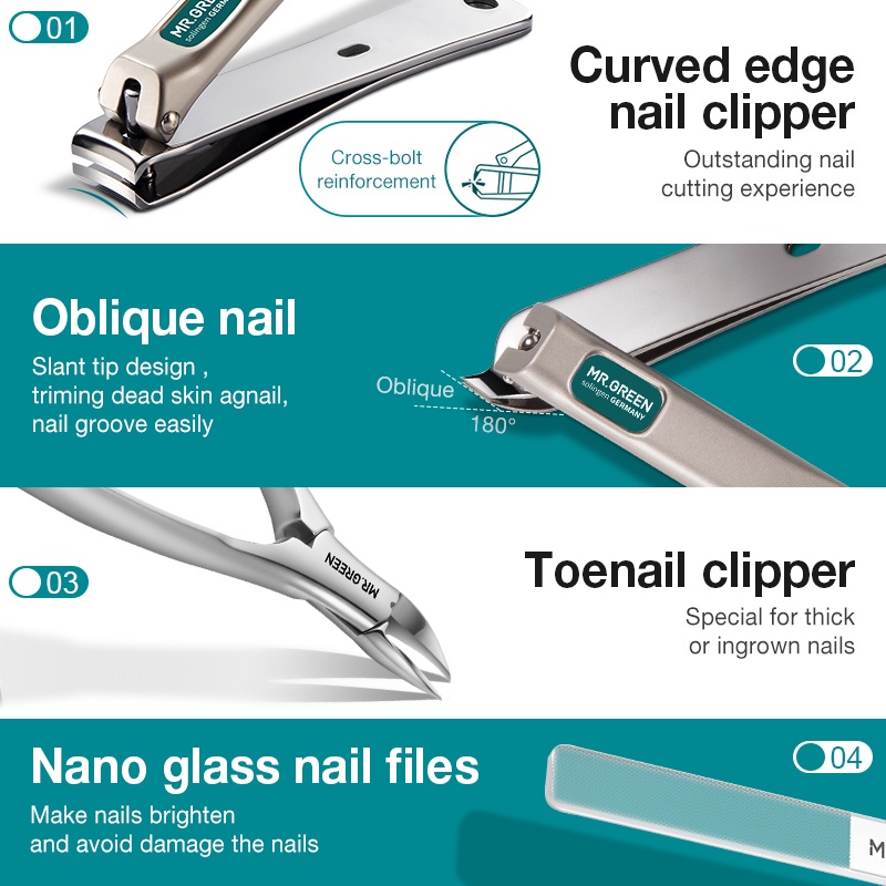 Alemanha Sr.green Nail Clippers Set Household Stainless Steel 8 Em 1 Conjunto De Alicates De Unhas Diagonais Manicure Alicate Especial Overlock Lixa Pedicure Para