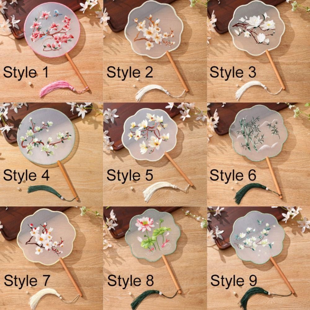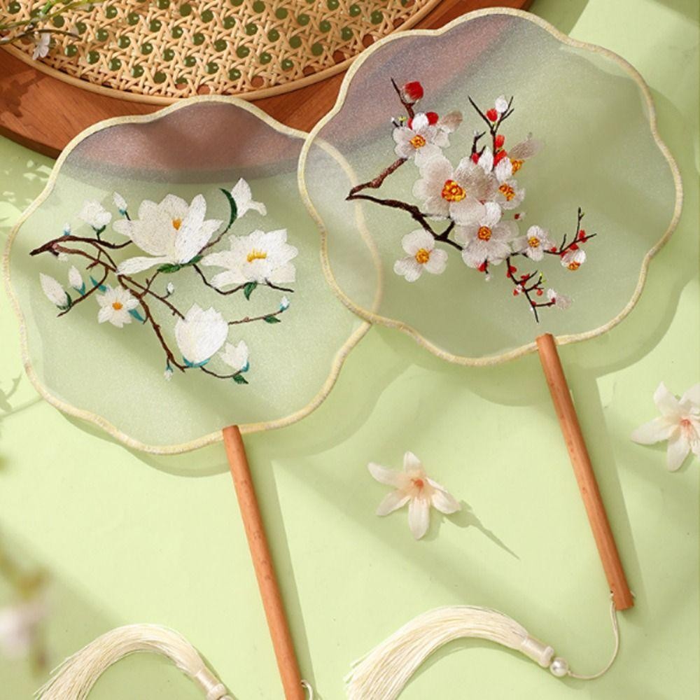 Ventilador De Seda MAOYE66 , Portátil Vintage Para Bordado Em Estilo Chinês Tuan Com Padrão Floral Antigo