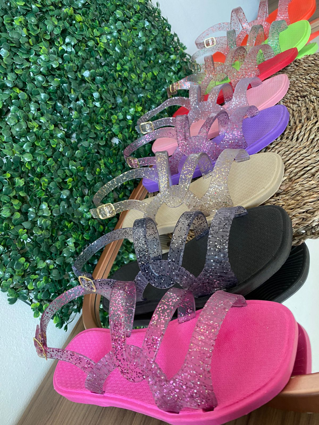 Sandália Feminina Papete Birken Brilho Glitter Percata Rasteirinha