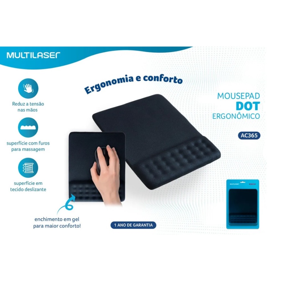 Mouse Pad Multilaser Dot Com Apoio Gel Pequeno Ergonômico Confortável Preto AC365