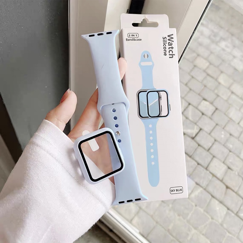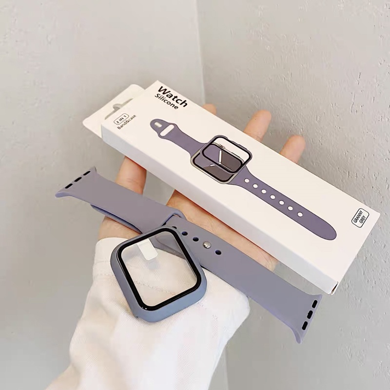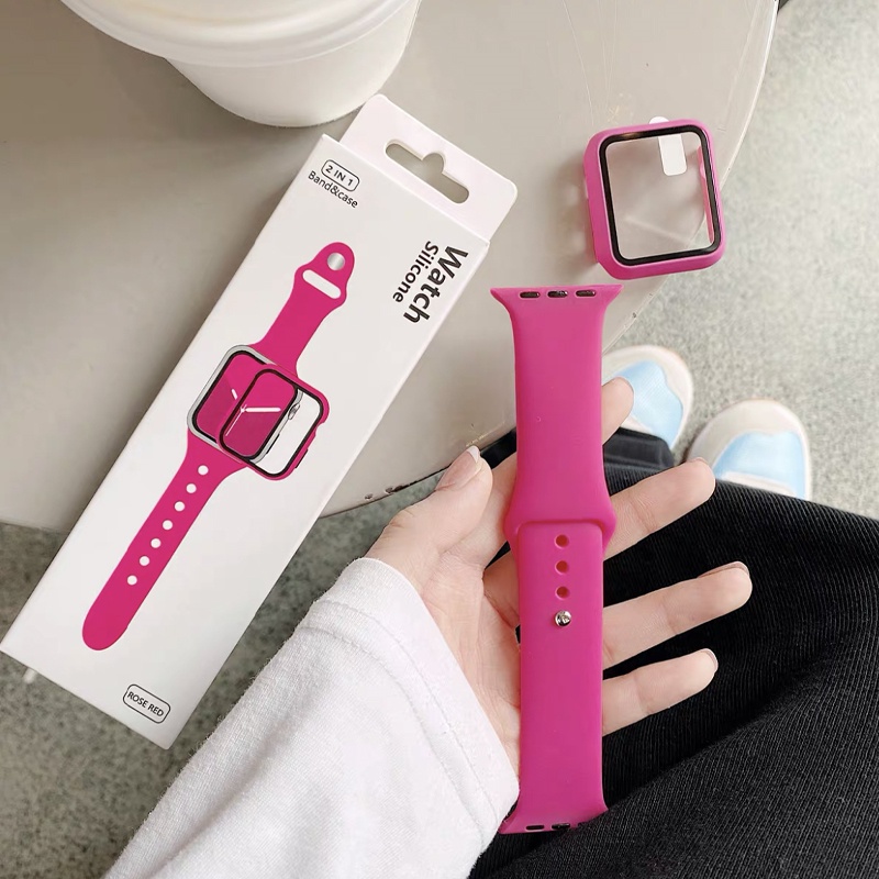 2 Em 1 Conjunto Caso + Pulseira De Silicone Para apple watch band 44MM 45mm 41mm 40mm 44MM Borracha Esportiva iWatch ser