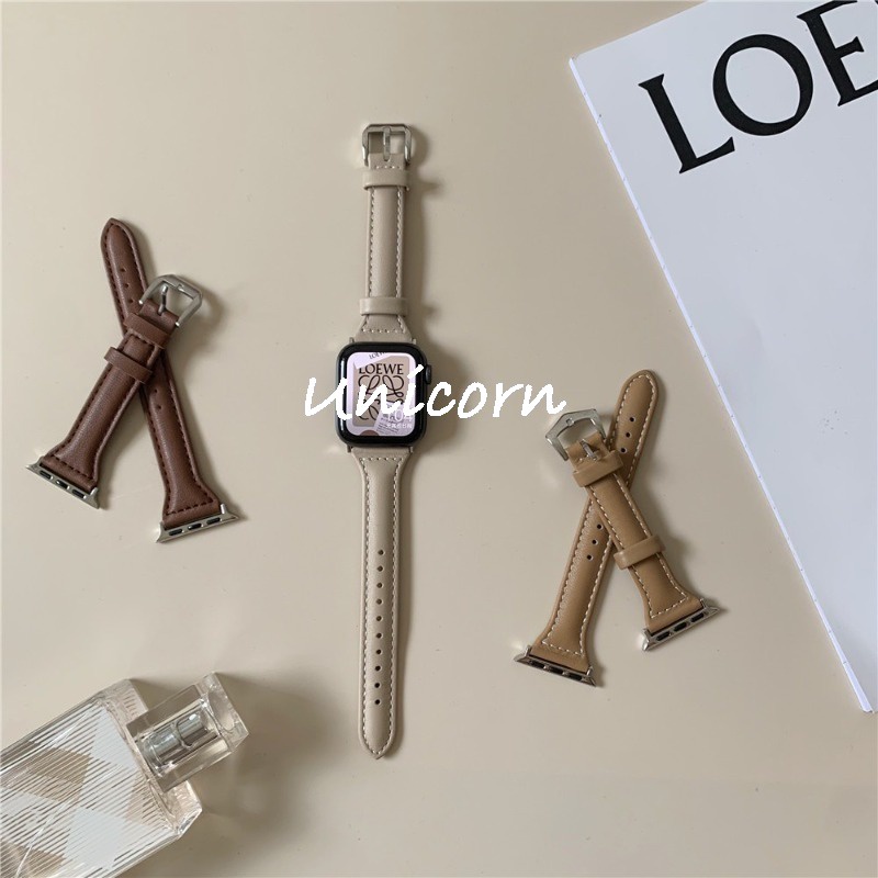 Pulseira De Couro Fina Para Apple Watch Band 46mm 42mm 44mm 40mm 41mm 38mm 49mm 44mm iwatch 10 9 8 45mm Bandas Ultra 2 7