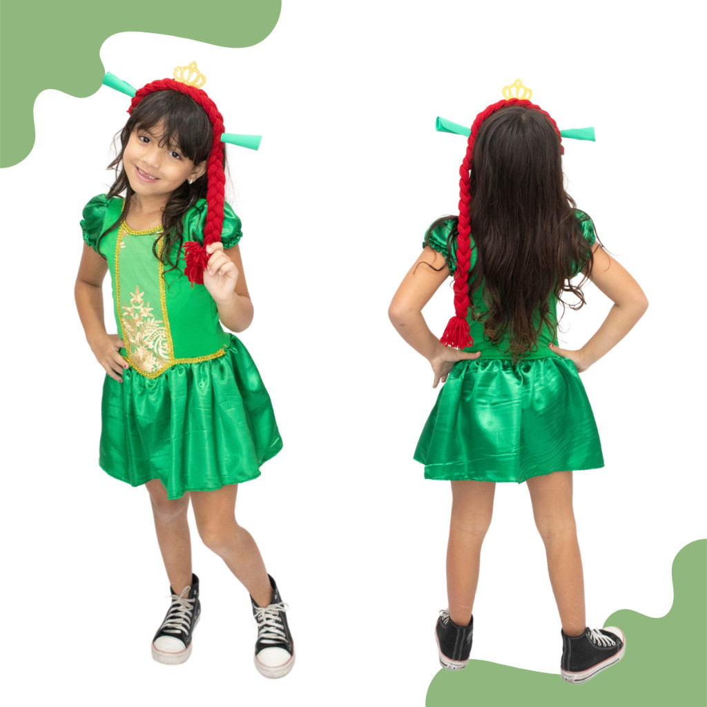Fantasia Princesa Fiona Infantil - COSPLAY Envio Imediato Carnaval