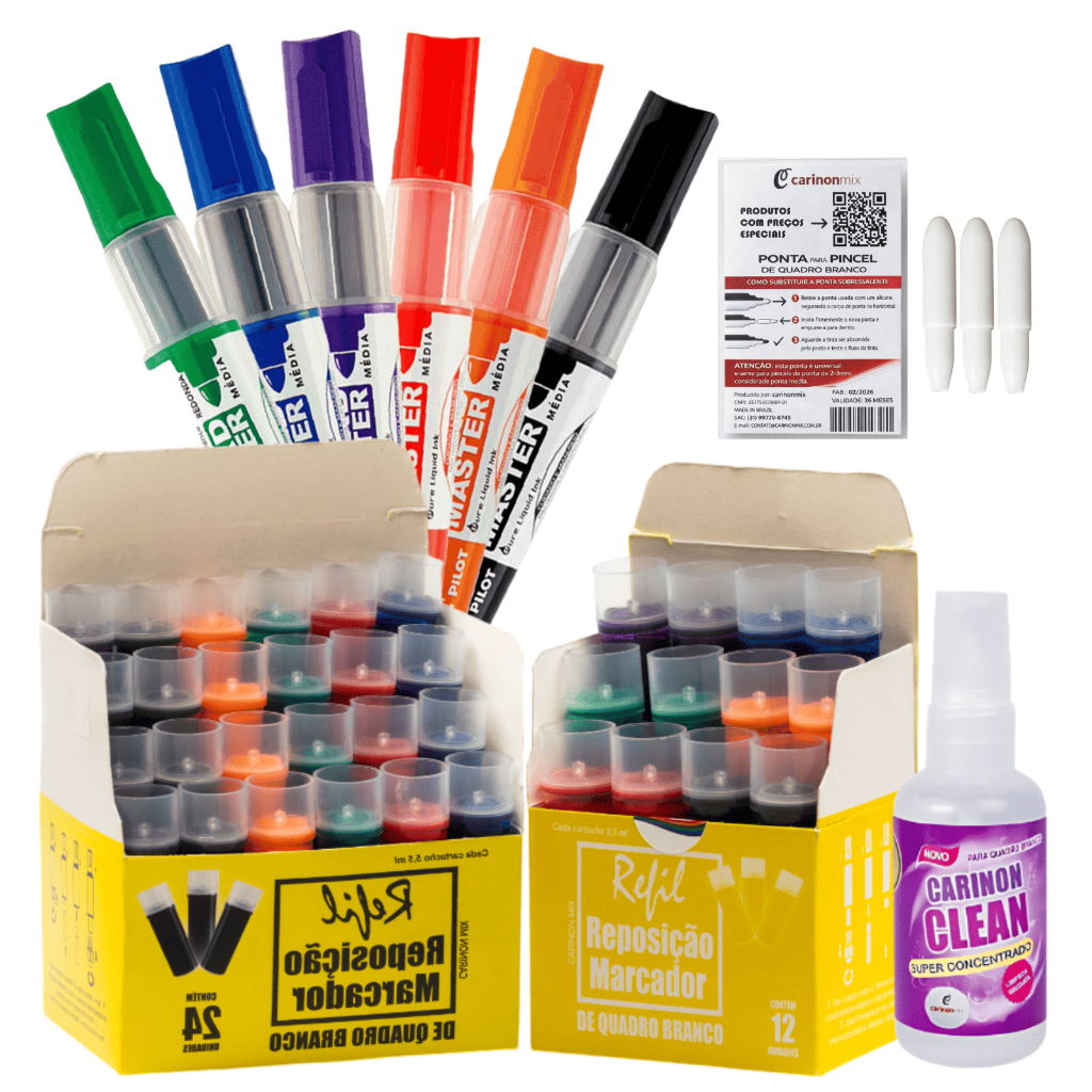 Combo 36 Un Recarga Refil para Marcador da Pilot Board Master + 6 Pinceis + 3 Pontas + Limpador