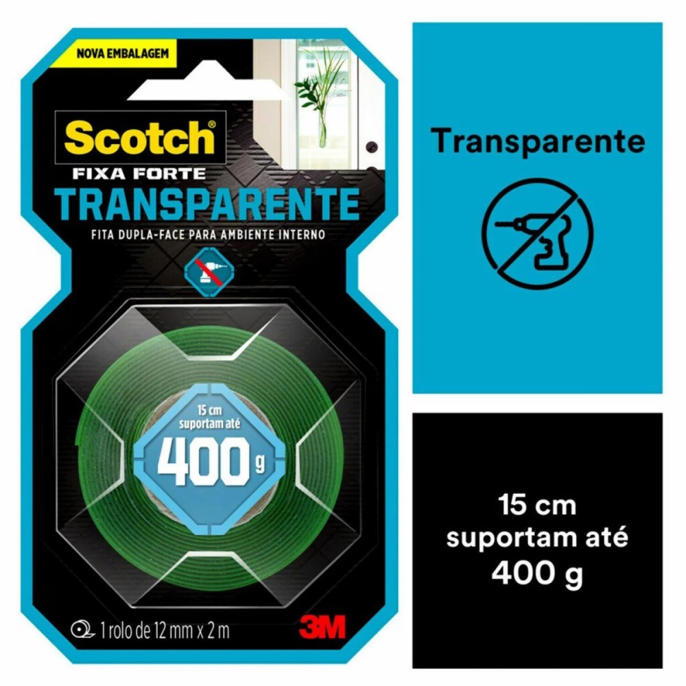 Fita adesiva dupla face 12 mm x 2 metros transparente - 3M