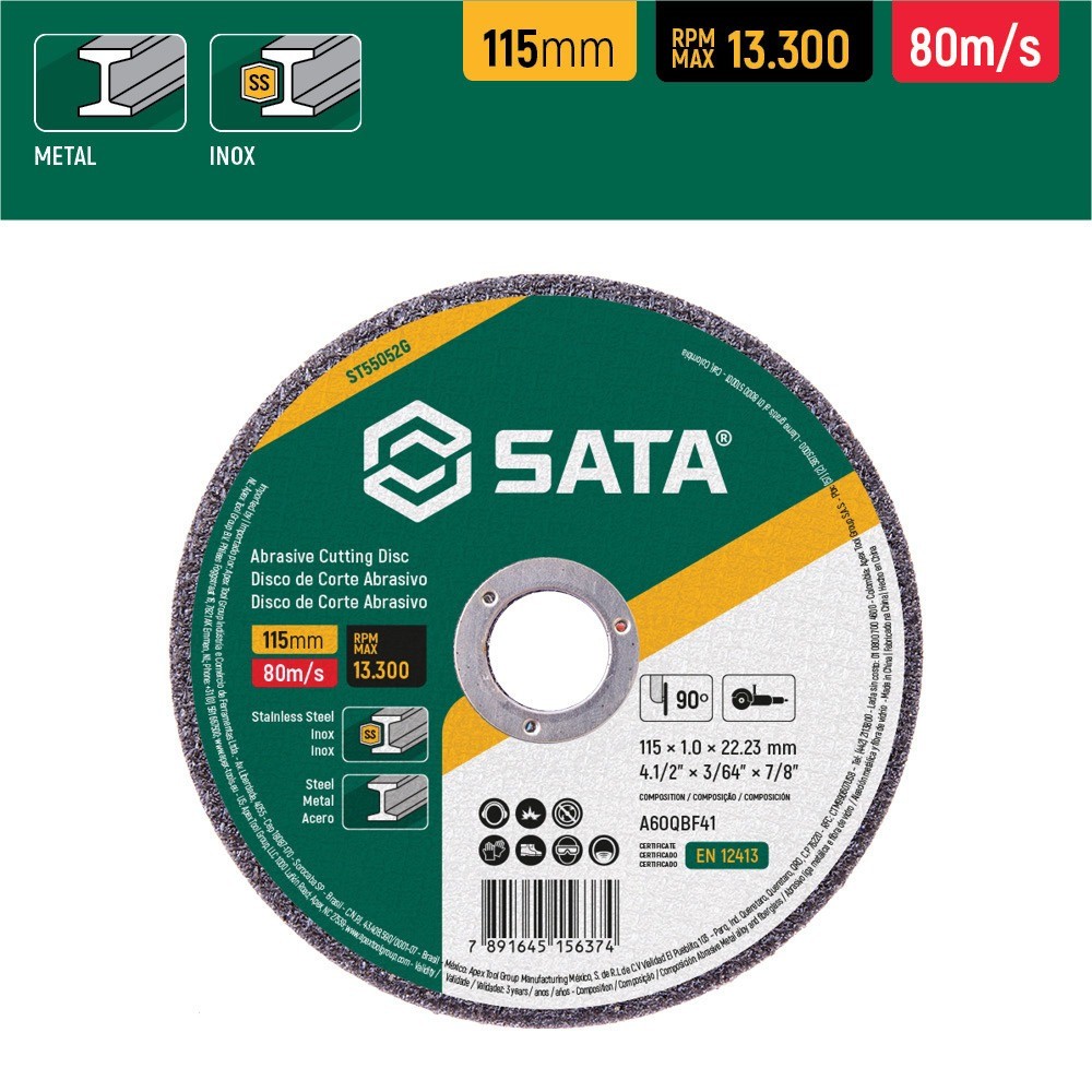 Disco de corte abrasivo metal/inox 4.1/2" X 1mm - ST55052G - Sata