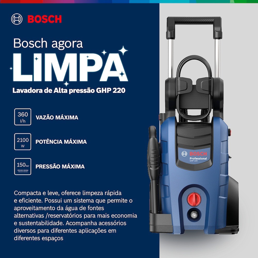 Lavadora de alta pressão 2200 libras com acessórios- GHP 220 Bosch