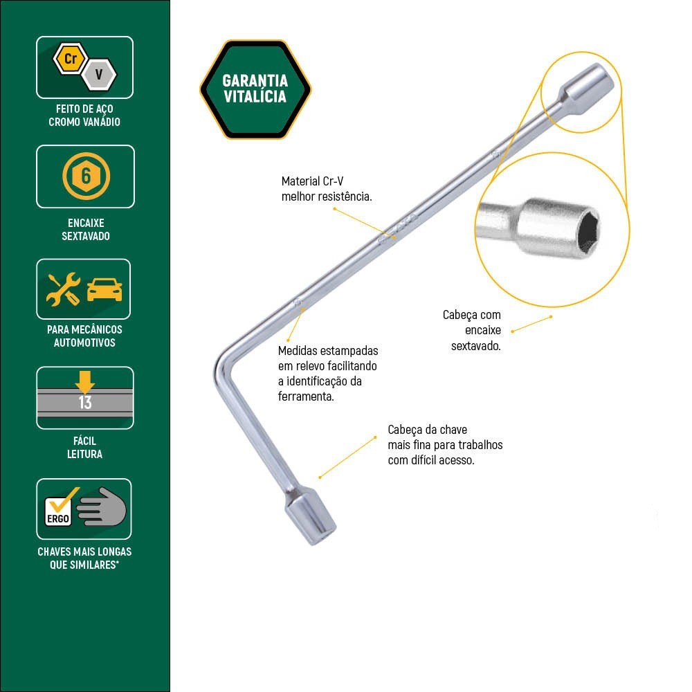 Chave biela sextavada 19 mm aço cromo vanádio - ST47522L Sata