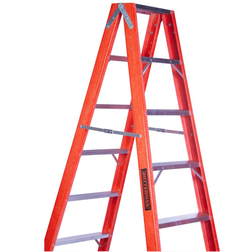 Escada tesoura dupla em fibra de vidro 8 degraus 2,40 m - ESC08240 Rotterman