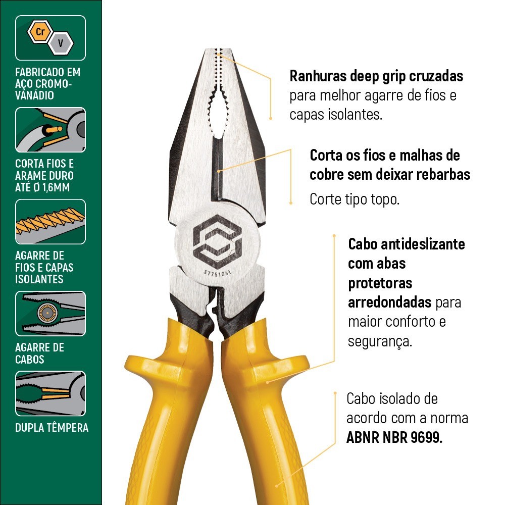 Alicate universal para eletricista isolado 8" - ST75104L Sata