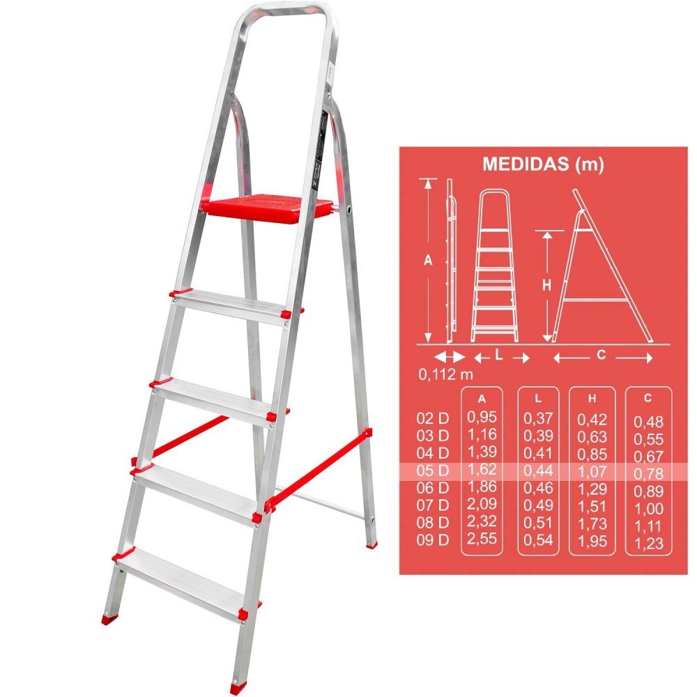 Escada de alumínio 5 degraus residencial - ESC0064 Botafogo