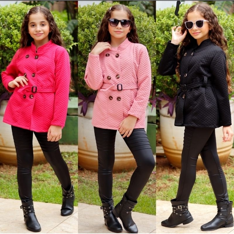 Blazer Infantil de Menina Casaco De Botões Moda Inverno Blogueira Jaqueta Infantil