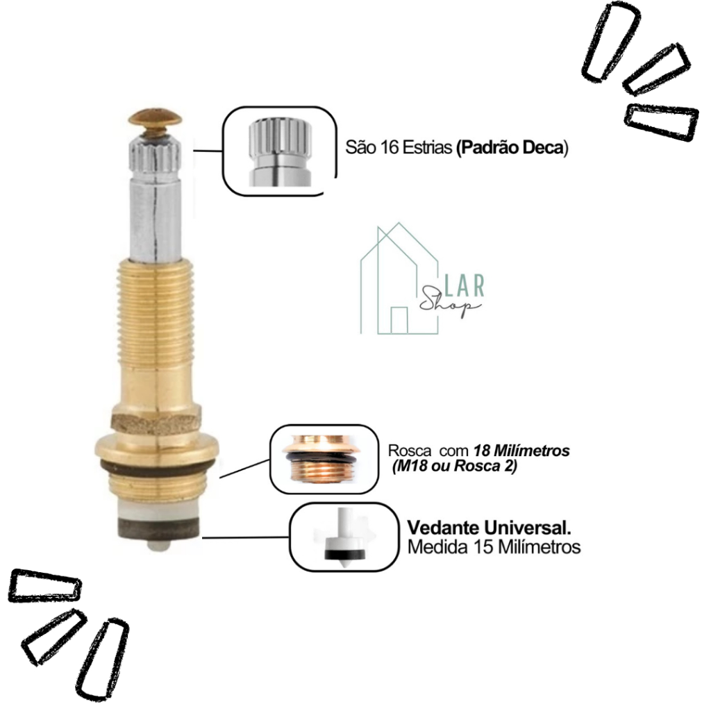 2 Reparo de Cabeçote Para Chuveiro Registro de Pressão 1416 Pistão Cromado 16 estrias