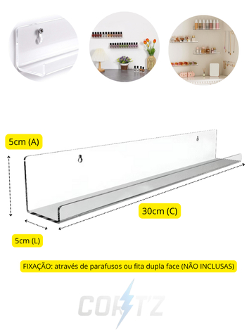 Kit - 4 Prateleiras Acrílico Invisível Flutuante 30cm