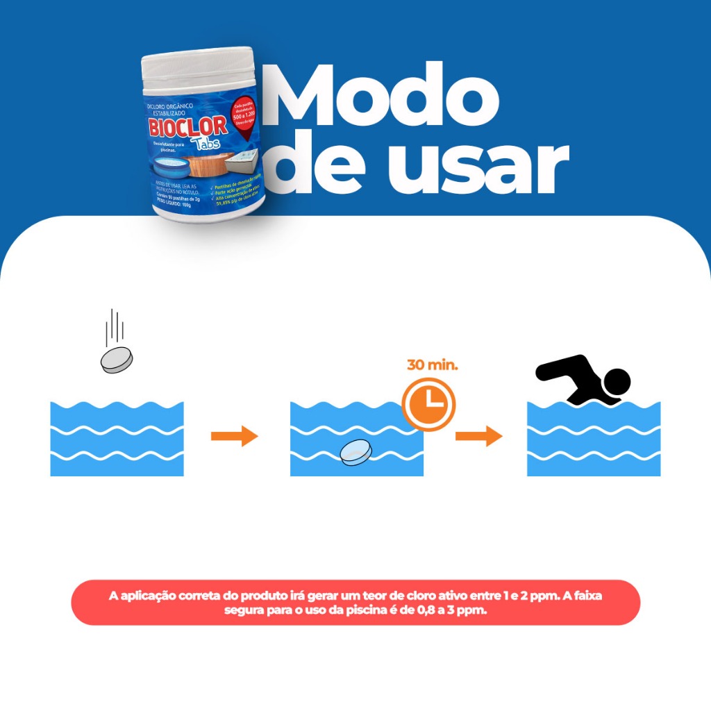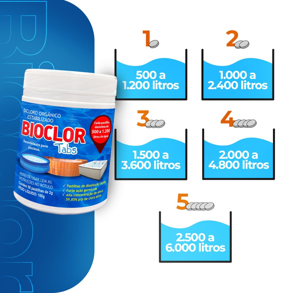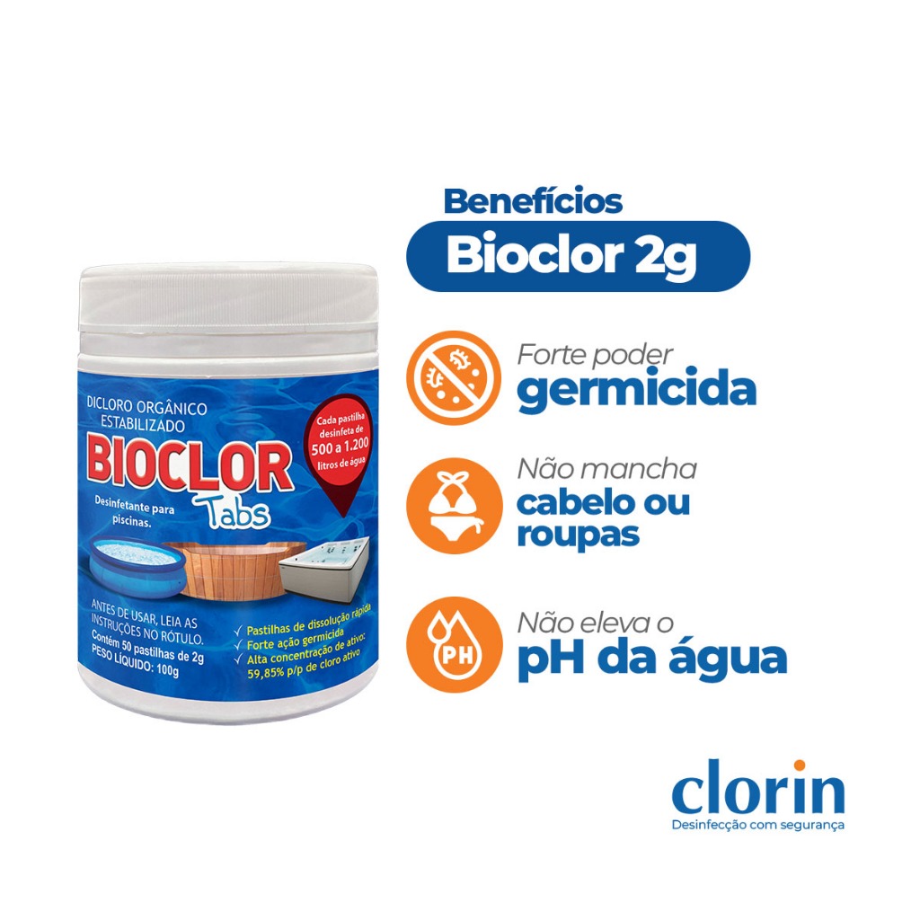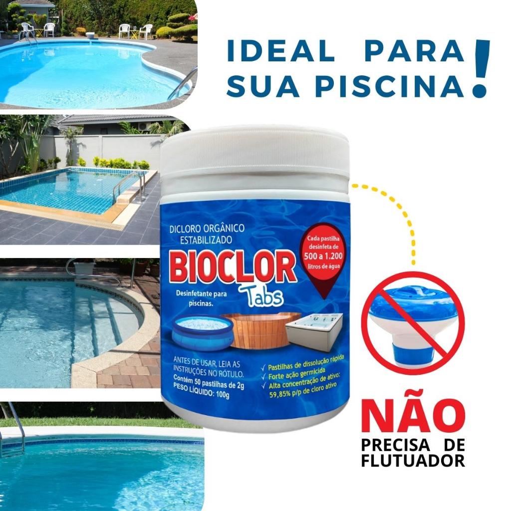 Cloro p/ Limpar Piscina Sem Flutuador c/ 50un - Bioclor Tabs