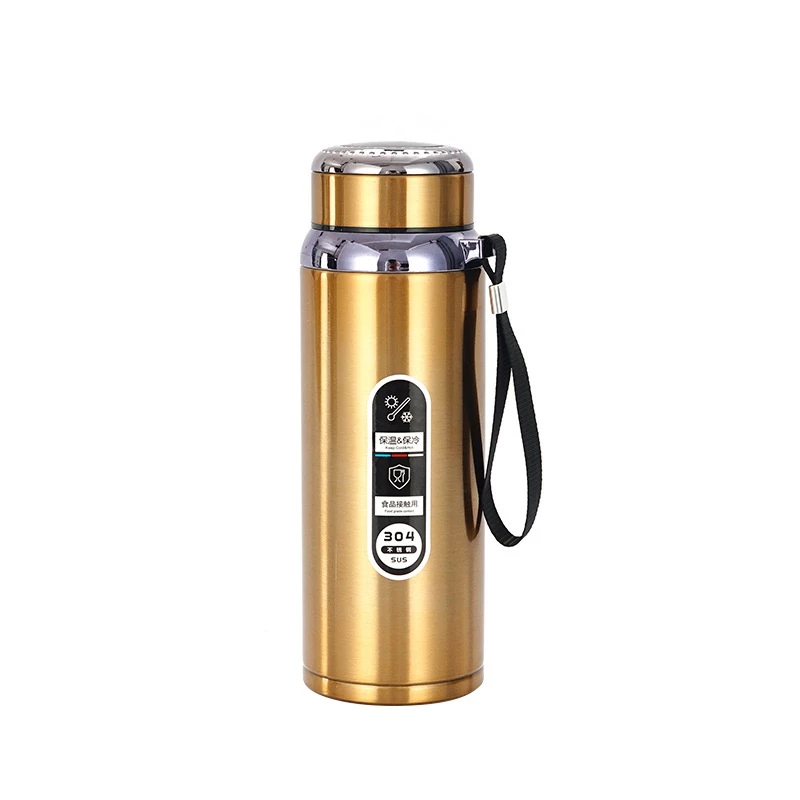 Garrafa 800ml Inox Térmica Com Infusor Prata Dourada De Água Café Parede Dupla Garrafa térmica