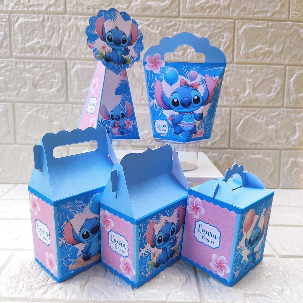 Kit Festa Personalizados Stitch menina Lembrancinhas Caixinhas de aniversário para festa - PEGUE E MONTE