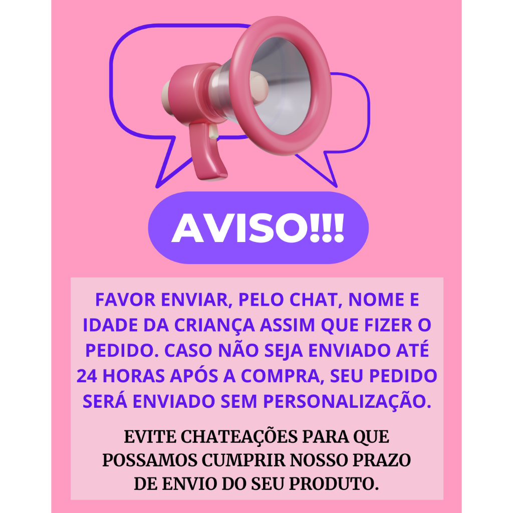 Sob encomenda: envio após 4 dias da compra