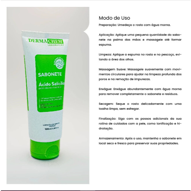 Kit 2 Sabonete Ácido Salicílico Pele Oleosa 100ml Dermachem
